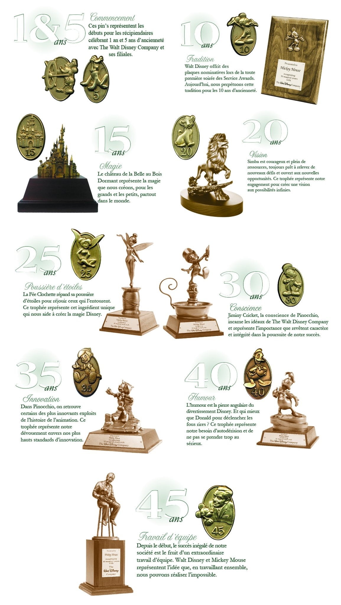 Celebrating Cast Members milestones, the Service Awards ceremonies (Disco themed!) were held this week. Recipients receive a small pin to attach to their name tag and in some cases a plaque or statue. You can see all the milestones in this neat graphic: