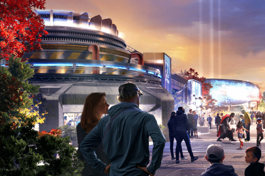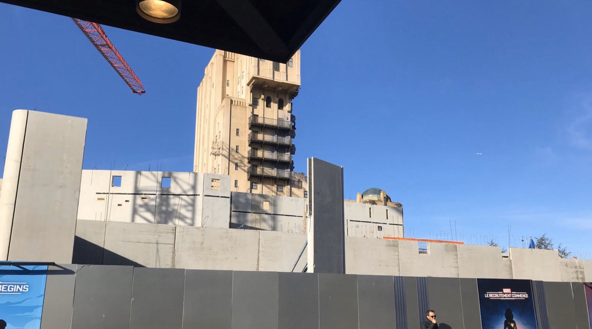 Things are moving along as scheduled for Avengers Campus, with the Spider-Man attraction show building coming along nicely like a set of LEGOs: