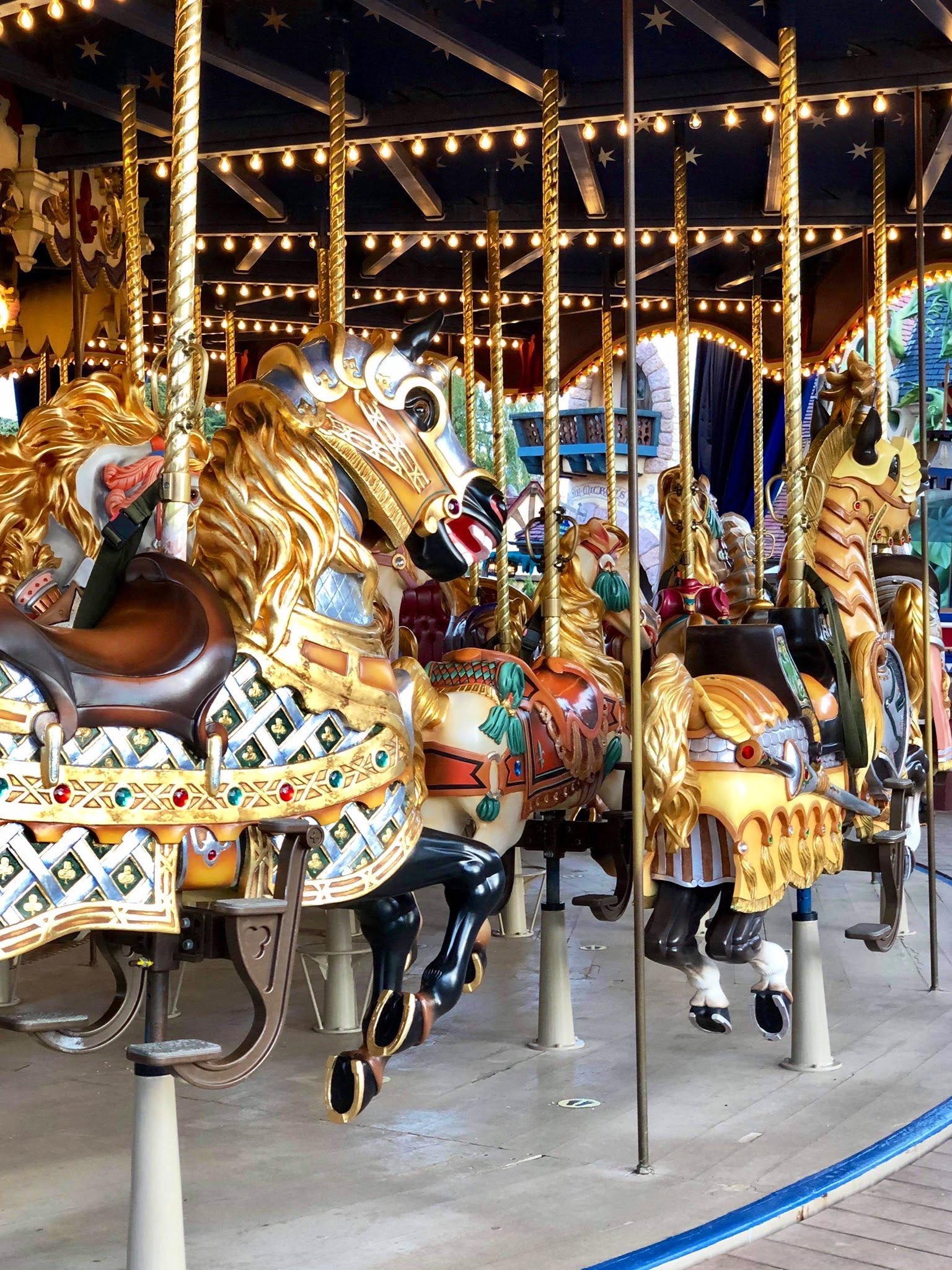 Over in Fantasyland « Le Carroussel de Lancelot » returned from routine refurbishment – it’s always a delight to see the amazing work of the park’s artists on this attraction:
