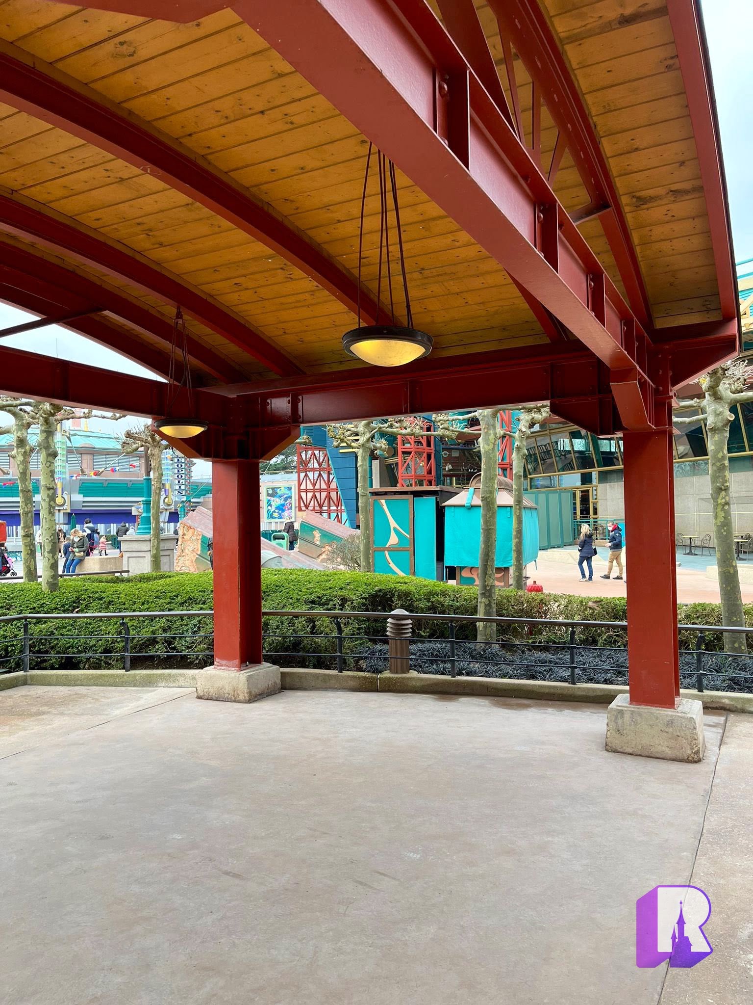 We start in Central Plaza where the new stages have been unveiled! They’re taller, bigger but also better integrated in the landscaping as there is now more dirt around them. They also have 2 stairs per stage and contain more permanent technical features for fireworks and more effects. Overall a great job on these.
