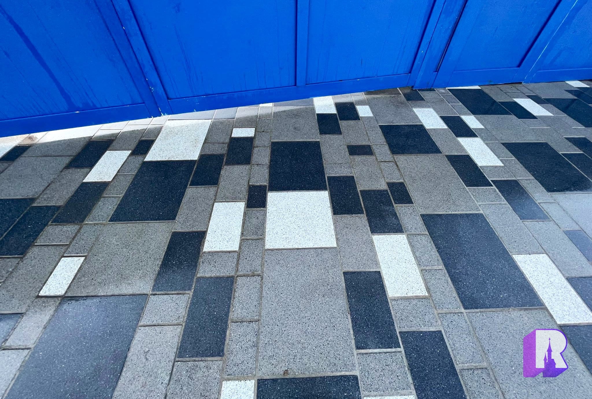 Are you excited about pavement? I AM and this week the walls temporarily moved back at Avengers Campus – just enough to reveal this fantastic black/grey/white paving pattern. Can’t wait to see this on the grand scale of the entire street!