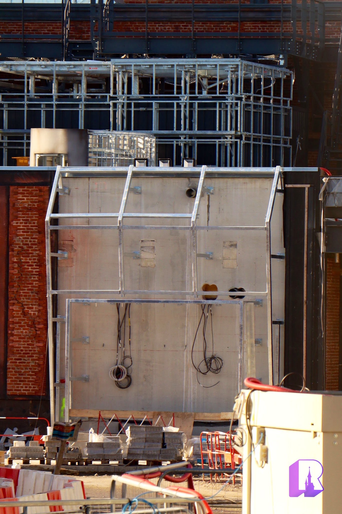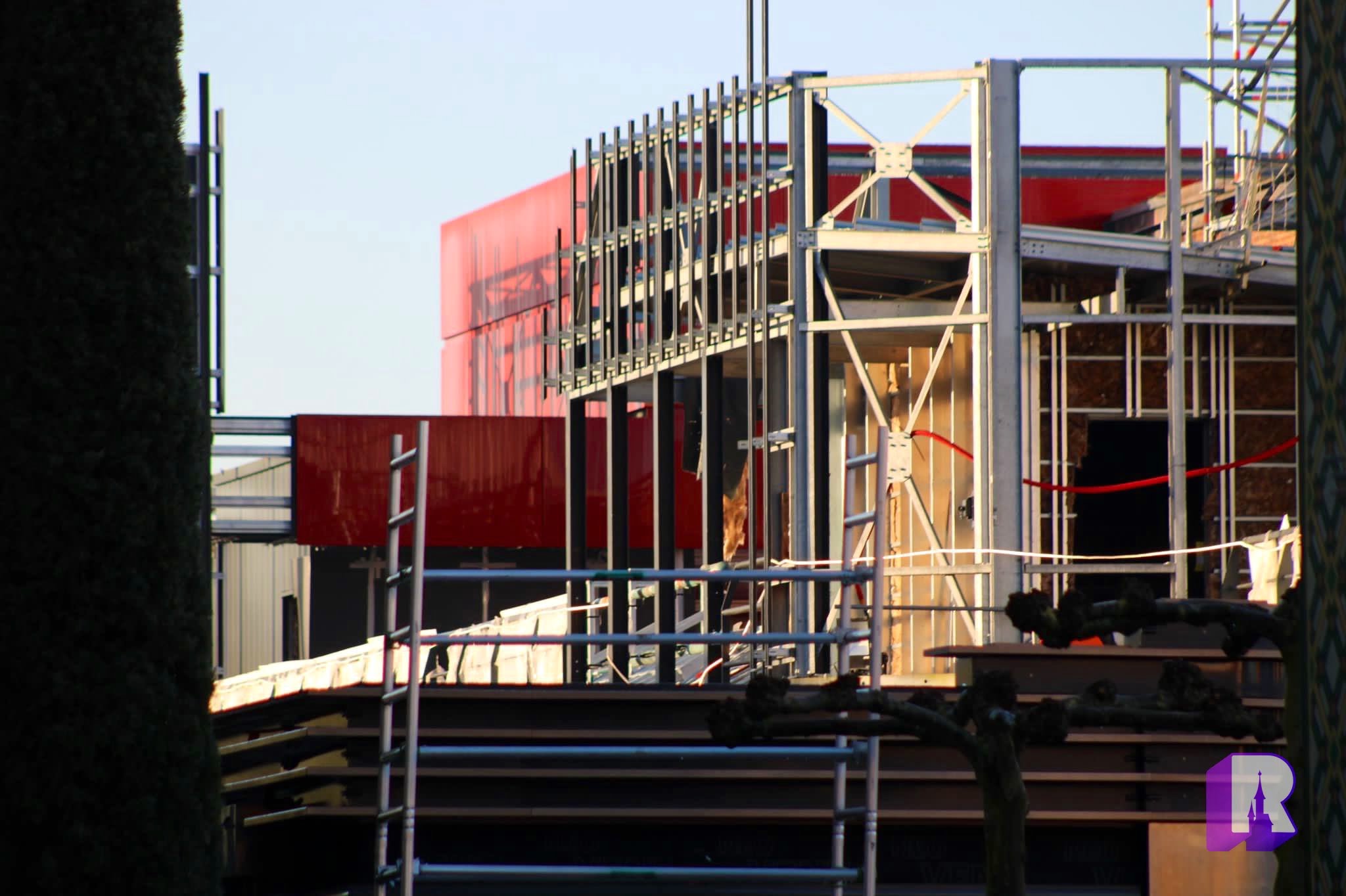 On the “entrance” side of things, theming is being applied to the PYM Lab buffet restaurant while the entrance merchandise kiosk appears close to complete. On the Spider-Man building the red cladding has made some good progress but there’s still a ton to go to get the land ready for this summer. It’s gonna be very tight.