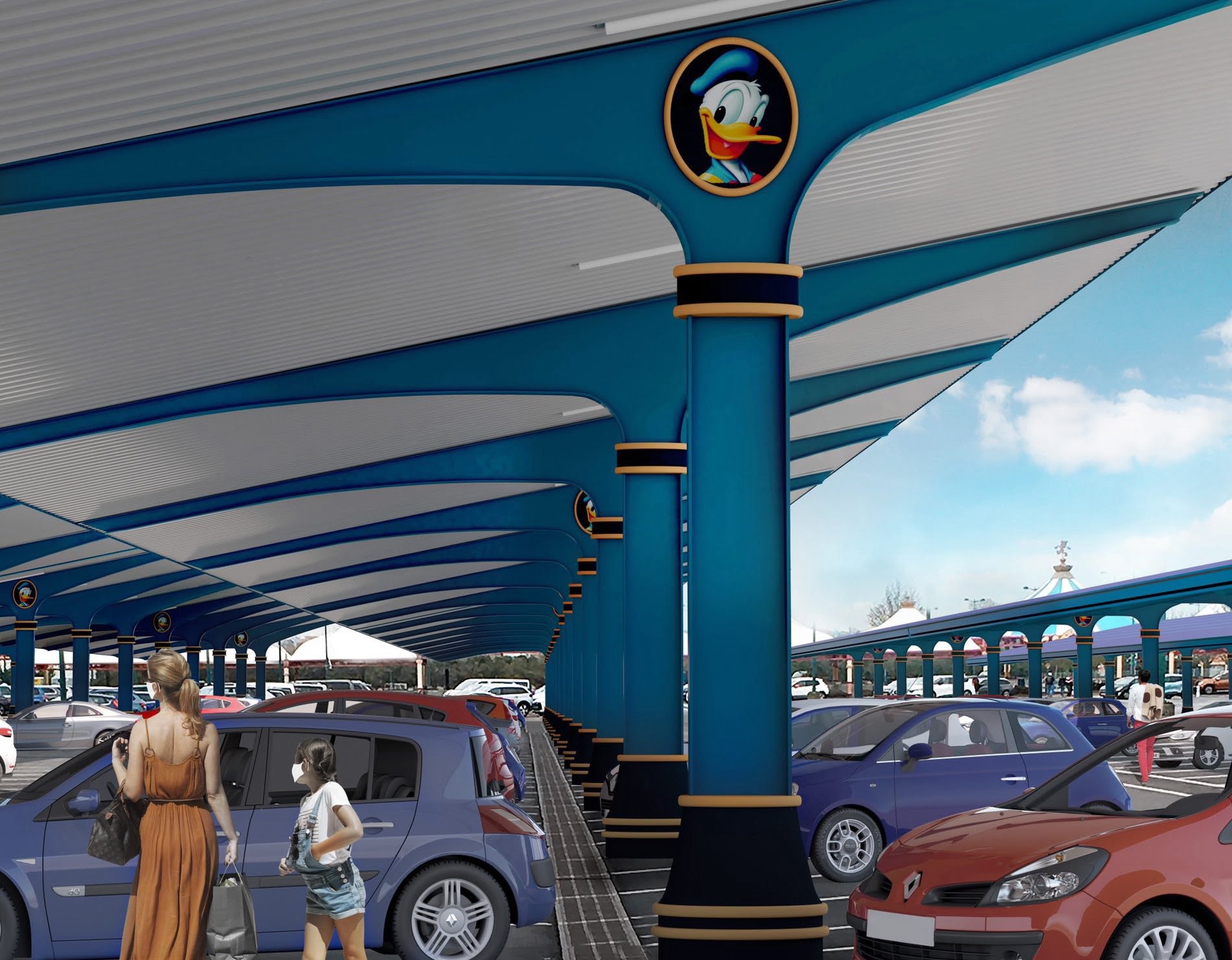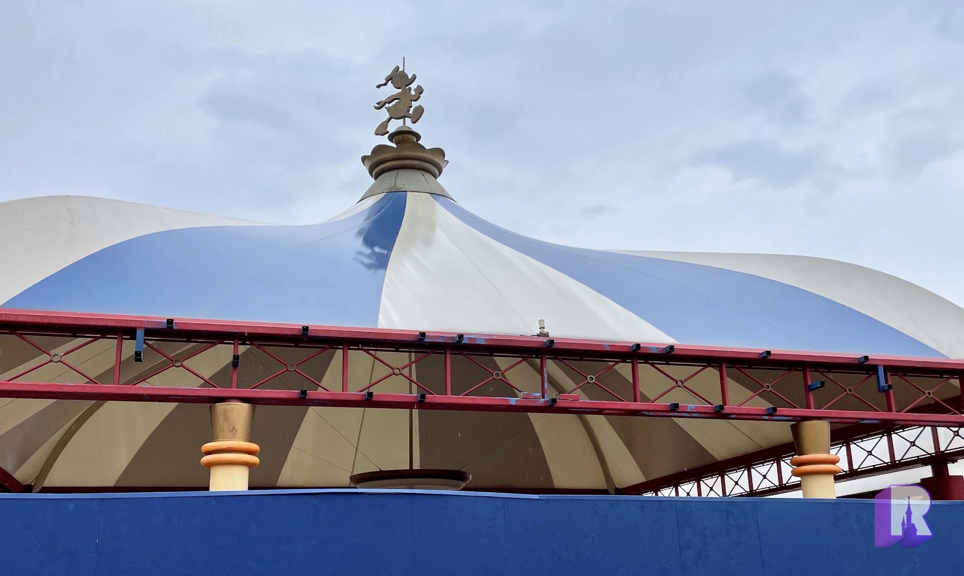 Over on Guest Parking, work continues on the full refurbishment of the tents. Some theming has been applied to the solar awning with color rings and character medallions. While this may not be final yet, it appears some significant budget cuts have been made compared to the concept art which was a lot more detailed and a higher level of quality. It’s a bit sad to see a cheapened version in practice.