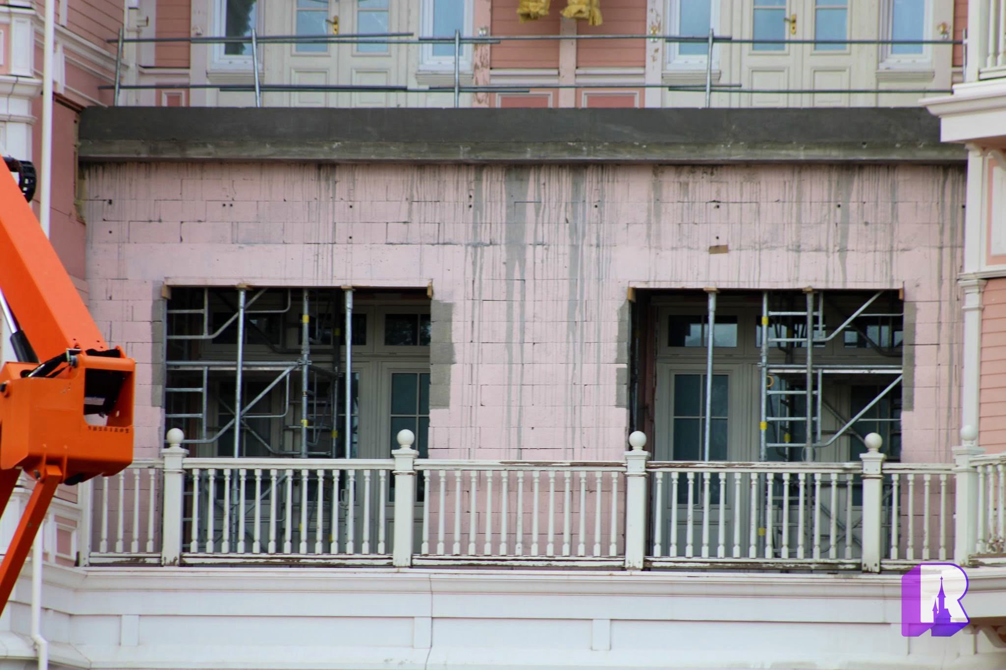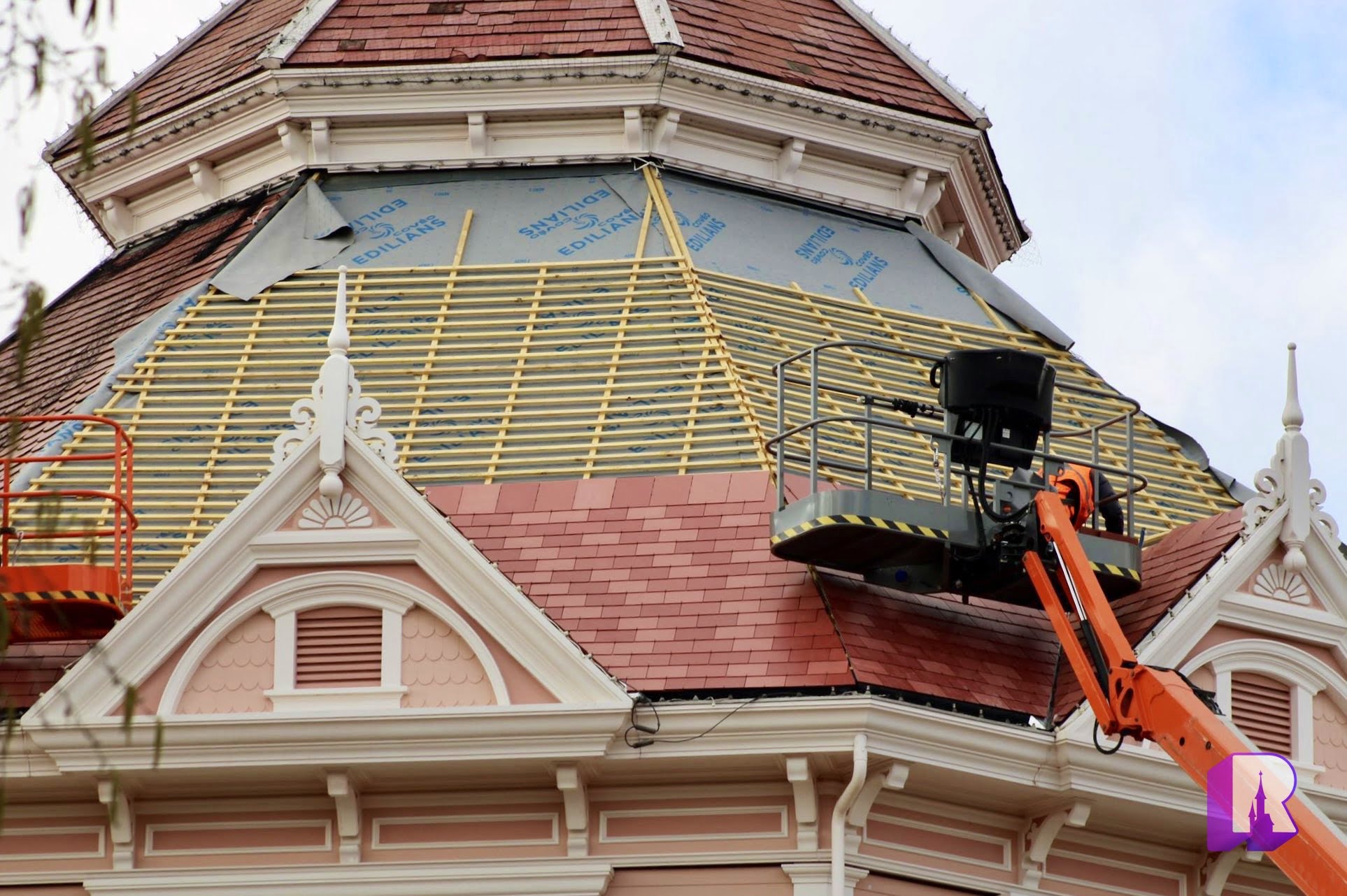 At the Disneyland Hotel, the first brand new tiles have been installed and they look very shiny ! Work also continues on transforming some of the balconies on the Fantasia Gardens side into internal hallways, and under the building which had been leaking on Guests for years.