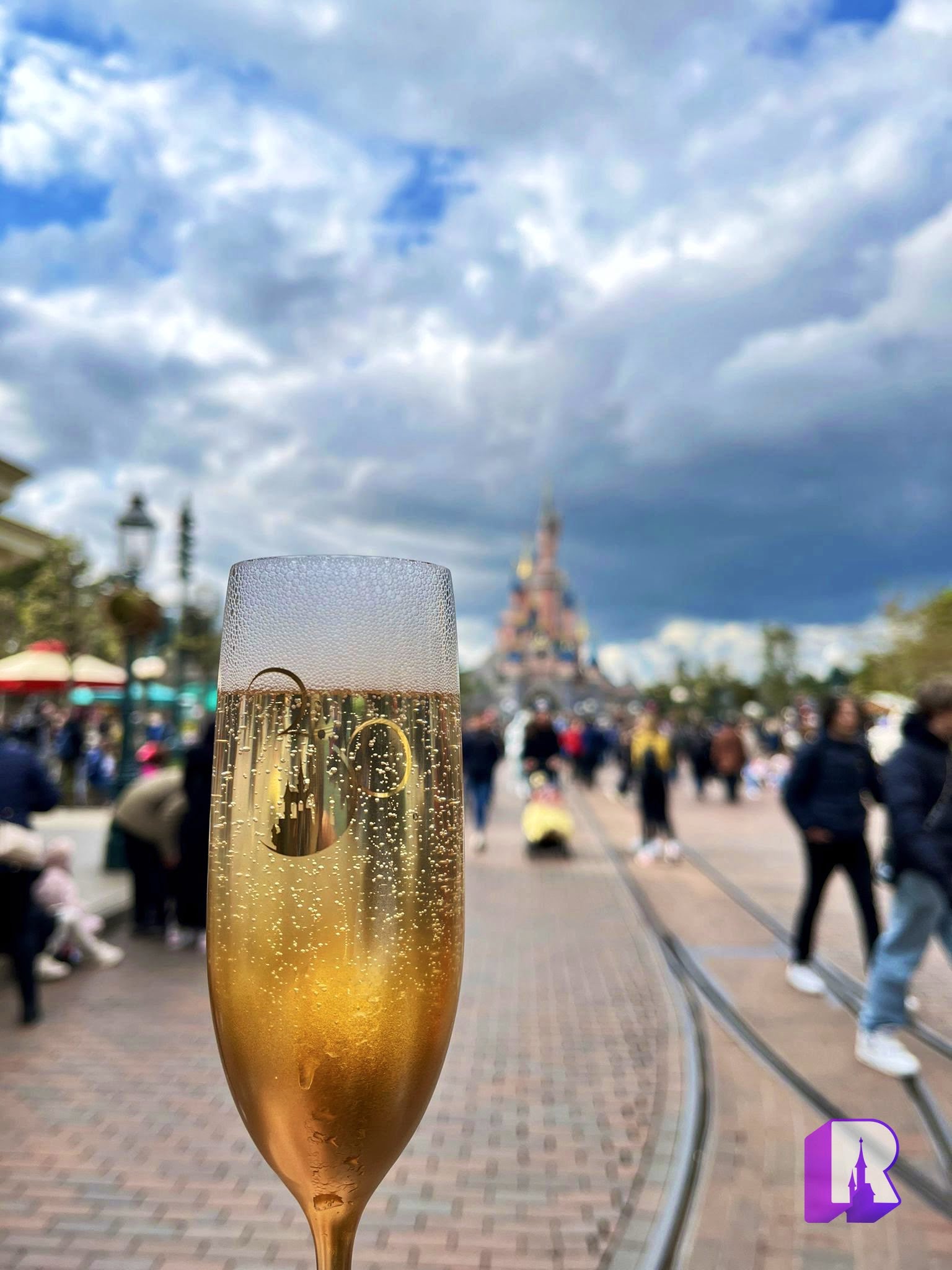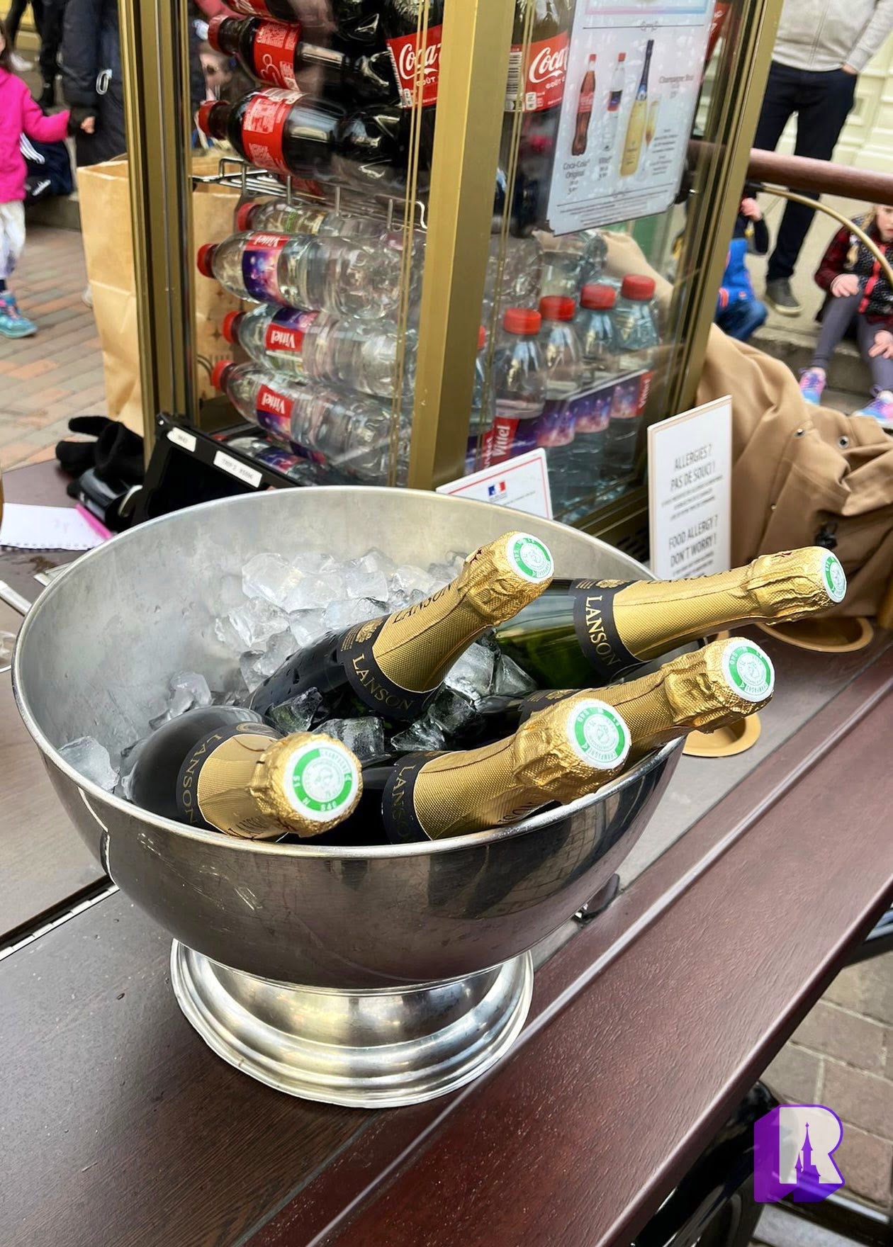 Champagne is back on Main Street! You can get a glass of Lanson Champagne for €15 which includes a souvenir DLP30 (plastic) glass to take home.