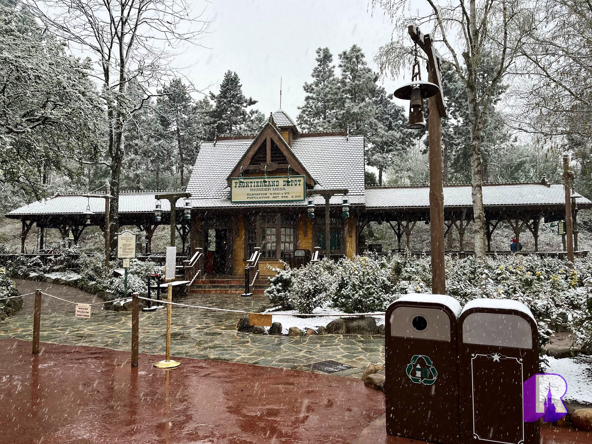 The return of traditional meet and greets also means that some of the random meeting opportunities have returned, like above with Pluto near Casey Jr. Wait- was it snowing ?