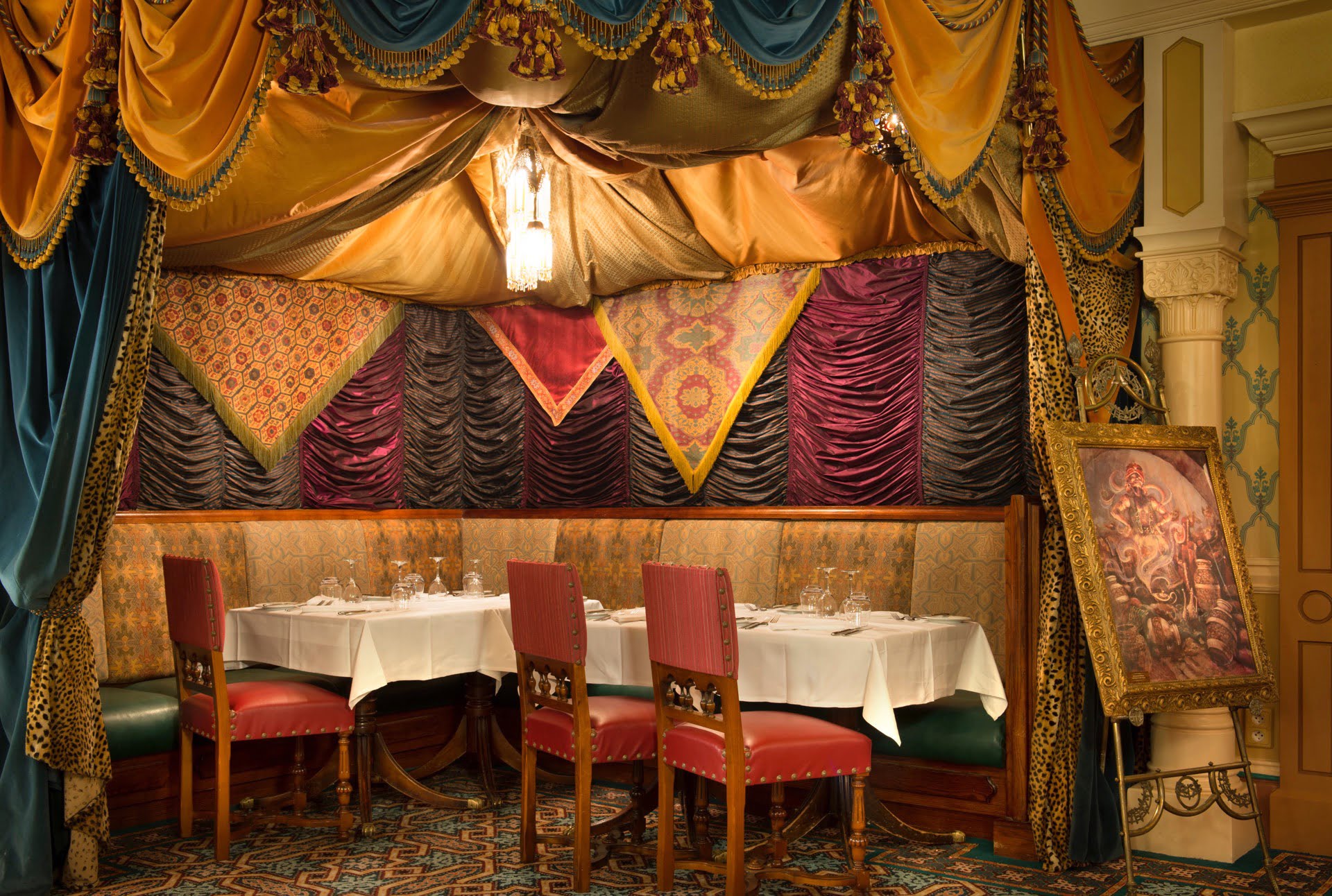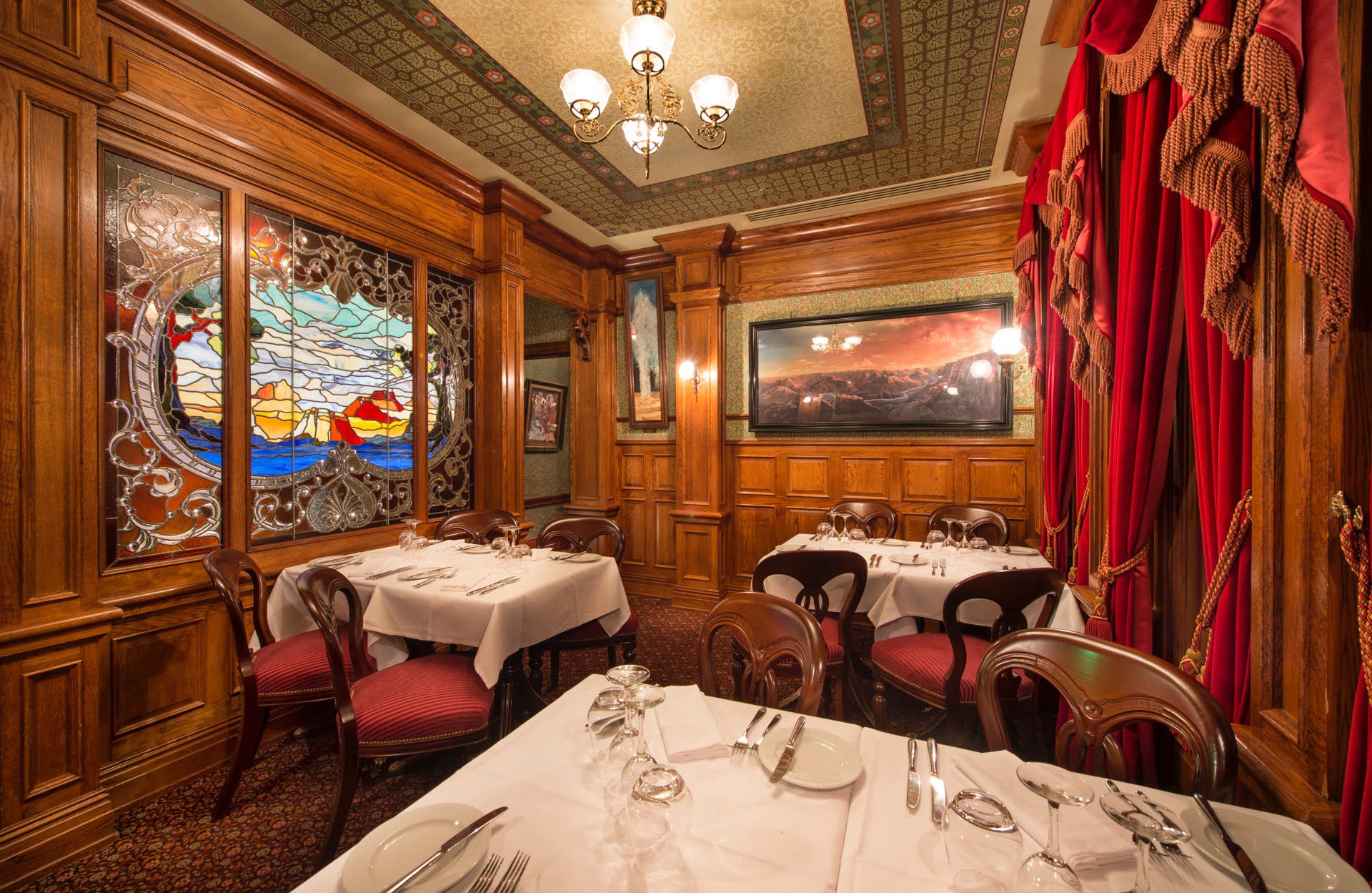 Les différentes salles reprennent la thématique des Lands de Disneyland Paris comme si elle avait été vue par un architecte de l’époque victorienne. La salle d’Adventureland est ainsi très marquée par l’orientalisme de la fin du 19e siècle, celle de Fantasyland par le style néo-gothique, celle de Frontierland par l’artiste américain Frederic Sackrider Remington, bien connu pour ses bronzes représentant des scènes du Vieil Ouest. Le salon dédié à Discoveryland est un hommage à la fois à l’Art nouveau d’Alphonse Mucha et d’Hector Guimard et à l’œuvre de Jules Verne revisitée par Walt Disney. Dans cette pièce, les motifs aquatiques de la moquette répondent harmonieusement aux arabesques célestes du plafond, traitées à la manière de l’Art nouveau. La cheminée est à elle seule un chef d’œuvre. Elle fut dessinée par Eddie Sotto en s’inspirant de celle imaginée par Alphonse Mucha pour la bijouterie Fouquet, aujourd’hui située au musée Carnavalet à Paris. Sculptée en noyer d’Amazonie, elle est surmontée d’une sphère armillaire (une modélisation de la sphère céleste) stylisée évoquant le roman De la Terre à la Lune, et dans laquelle flotte une maquette du Nautilus réalisée par Tom Sherman, le directeur artistique de l’attraction Les Mystères du Nautilus.