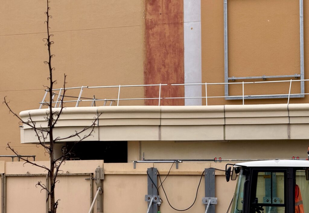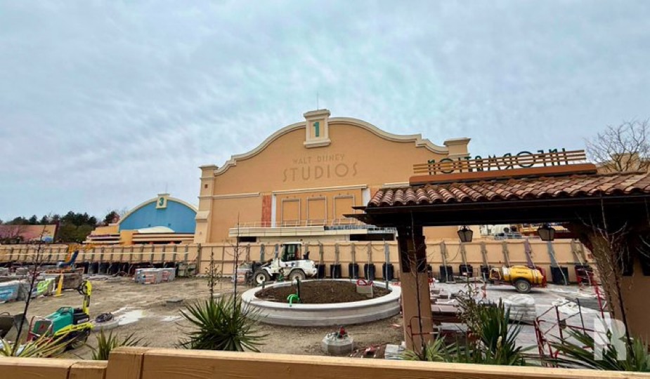 Du côté de Studio 1, bientôt renommé World Premiere, la thématisation est en cours sur l’entrée et la sortie côté parc, qui protégeront le lieu de la lumière extérieure. Et c’est très… beige !