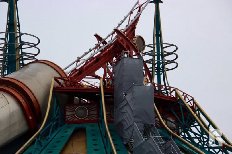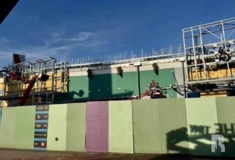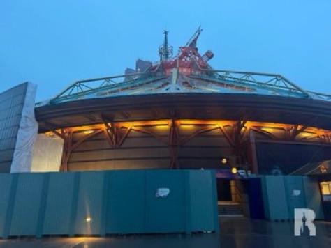 Le bâtiment de Space Mountain est toujours en travaux pour recevoir un nouveau système d’éclairage et d’autres mises à jour.