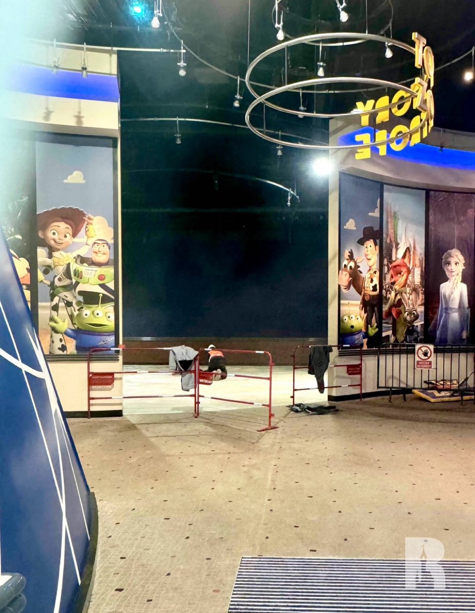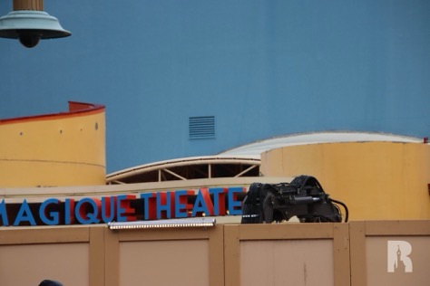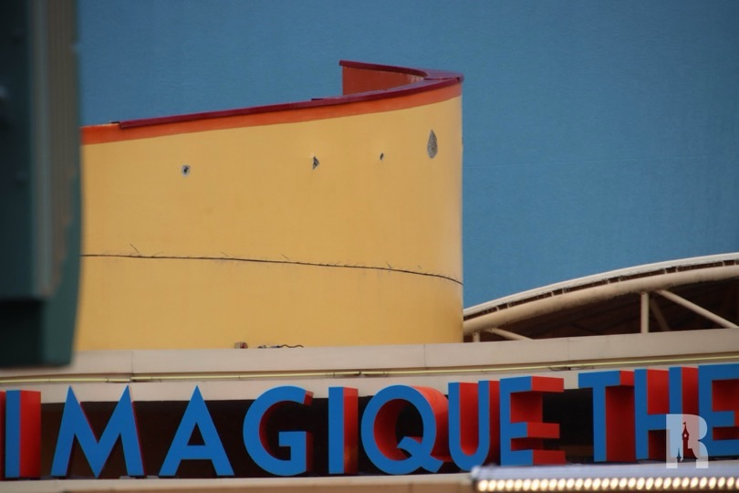 Le démantèlement de la marquise du théâtre Animagique continue, afin que tout le monde puisse voir la grande affiche derrière.