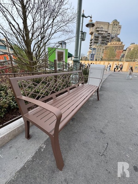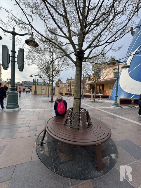 Heading into Walt Disney Studios Park it’s a bench party. Round ones, square ones .. places to sit ?! Not long ago Guests were sitting on the floors along various walls. Progress.