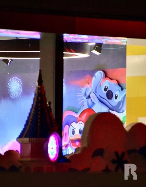 From Disney: the shop has been completely redesigned, starting with its exterior façade, which features several nods to the M&M’S brand, including an elegant new window display depicting a boardwalk on a large, three-layered illustration, creating an illusion of depth.