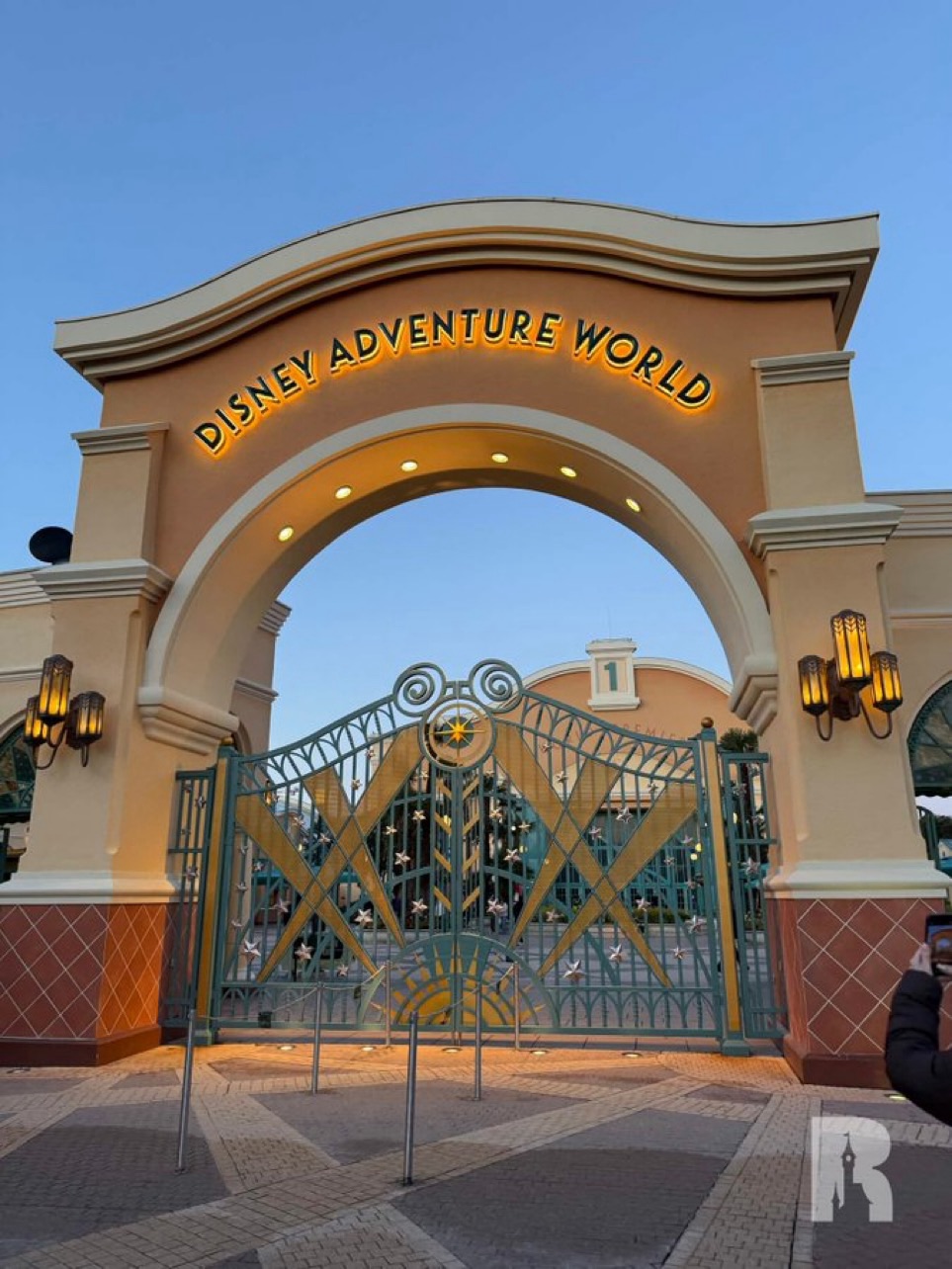Upon arrival to the gates, the Disney Adventure World logo had been unveiled, including the medallion inside the main gate.