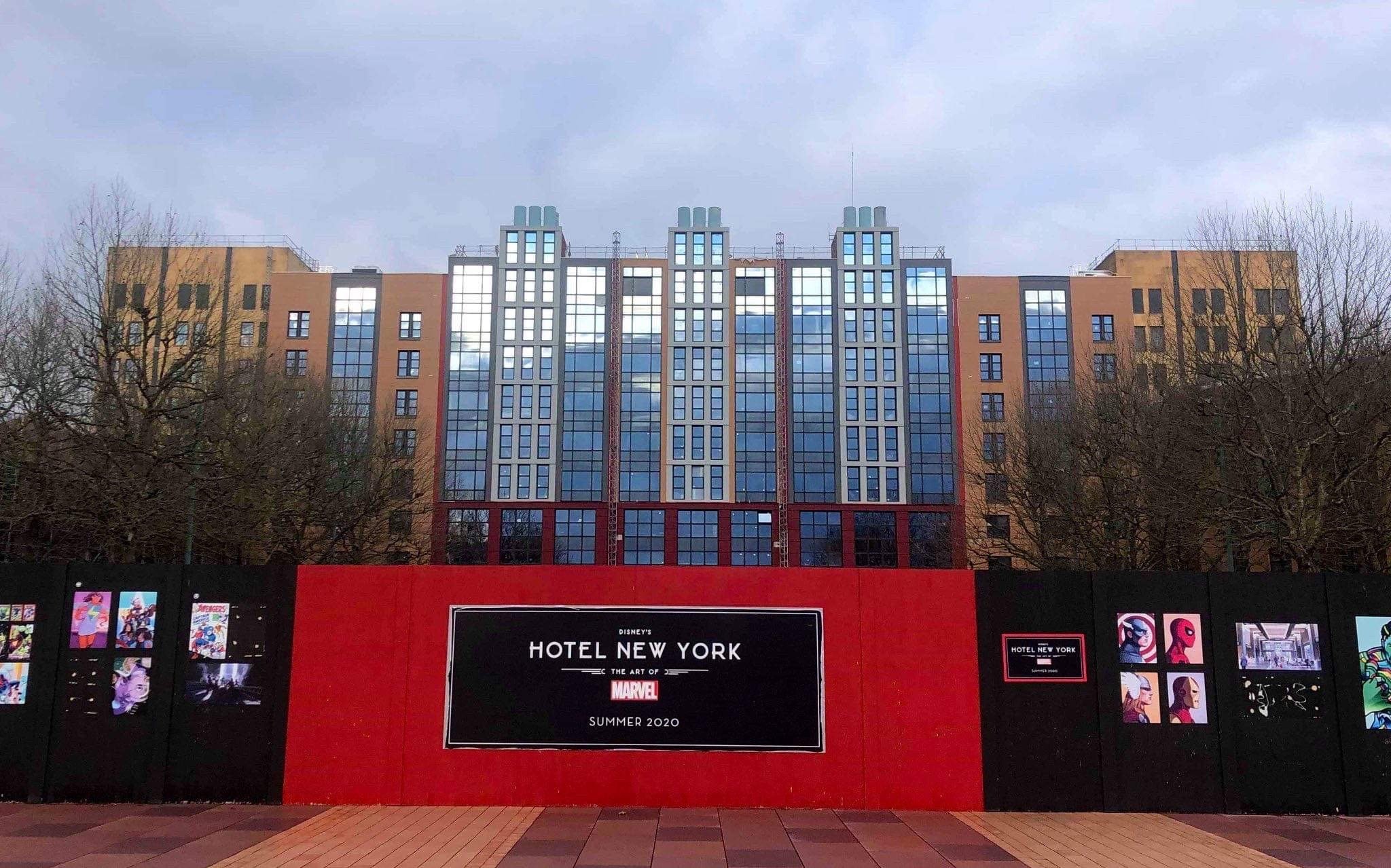 Currently, DLP is focusing on an ambitious renovation of the Hotel New York into the Hotel New York: The Art of Marvel, which will feature not only appearances from superheroes but also plenty of different styles of art guaranteed to keep guests interested throughout their stay. In order to keep with the theme of Marvel art, the black and red construction walls are covered in different artworks from the Marvel franchise. There are sketches of the classic Avengers like Captain America and Black Widow, but also more detailed drawings of more obscure Marvel heroes who do not have their own movies (someday, there will be a Squirrel Girl movie – I will make this happen).