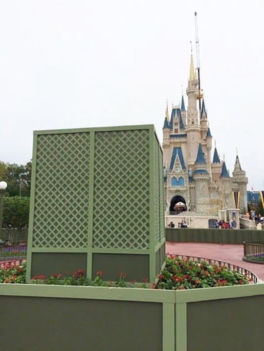 Disney has always been known for its innovations, but did you know that it also has its own paint color? That’s right, the construction walls in Disneyland and Walt Disney World tend to be painted with a green color affectionately known to Imagineers and fans alike as “Go Away Green”. This blueish-greenish hue is meant to allow the construction walls to blend in with their surroundings, averting guest’s eyes to more colorful things around the park. The color is used not only for construction walls but also for different things like backstage buildings, fences, and even some garbage cans!