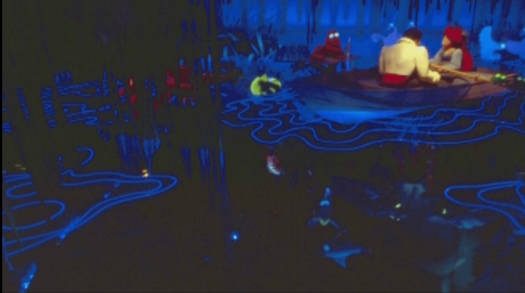 Les véhicules devaient pouvoir plonger dans l’eau de la manière la plus réaliste possible. Pour cela, les Imagineers ont travaillé sur une technique de projection sur des panneaux en verre mais aussi avec de la fibre optique. L’idée était de donner une impression de surface/démarcation entre les deux mondes. Et devinez quoi ? Ils avaient réussi !