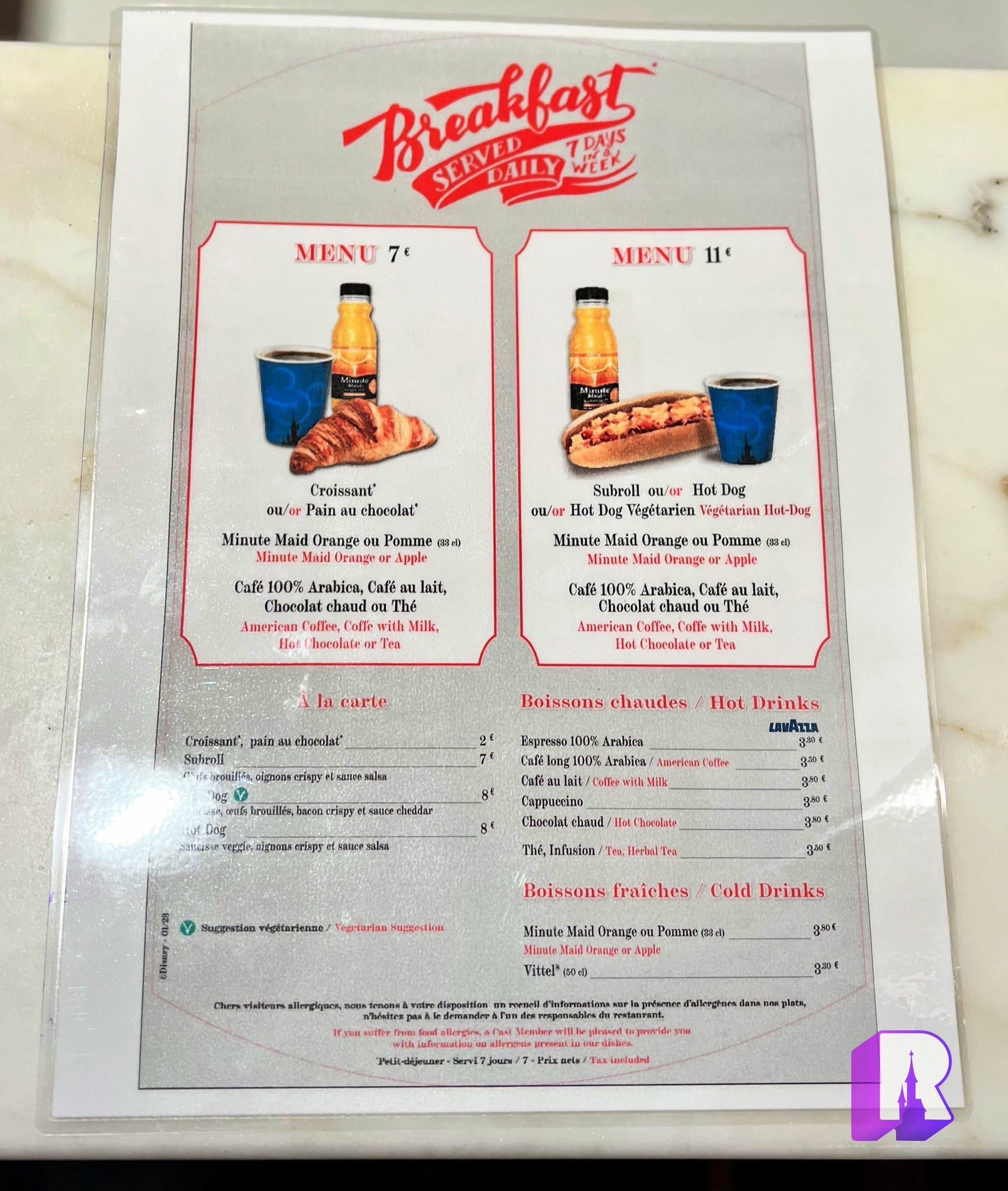 Breakfast is now available at Casey’s Corner every morning until 11 AM. Apart from the classic formula with a pastry there is also a new sub option which contains eggs and onions. Nice to see a bit of variety and options for breakfast at Disneyland Park.