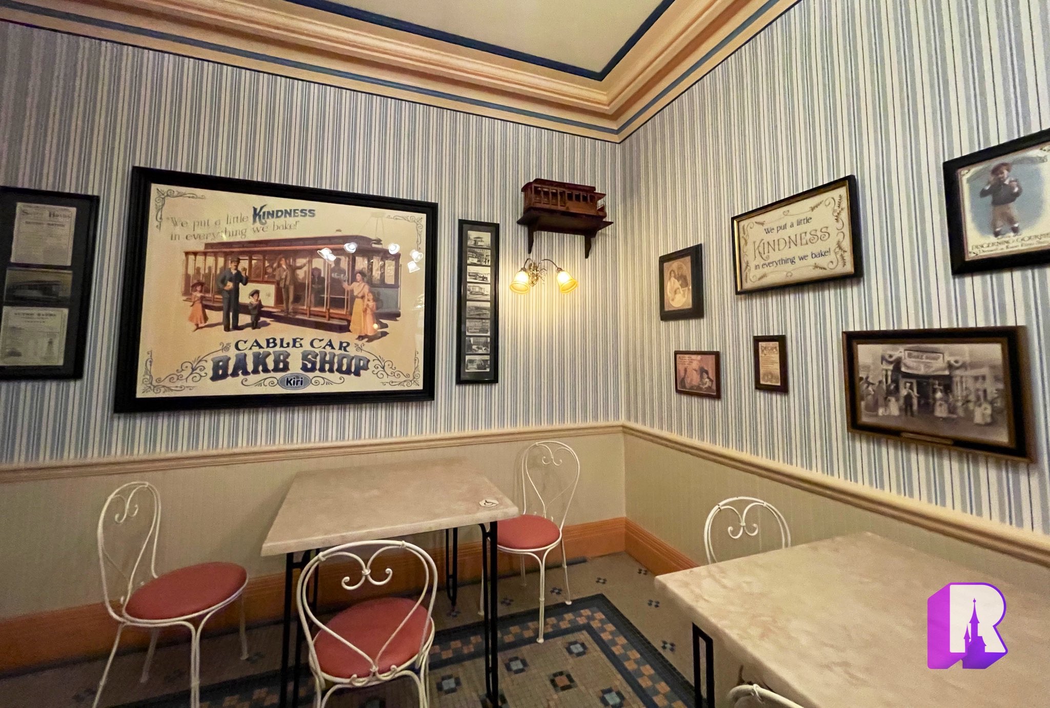 Not a ton has changed inside the Bake Shop but the location has been generally refurbished, with new art created to tell the updated story of a family from San Francisco who came to Main Street to open the shop. Their moto is “We put a little kindness in everything we bake”
