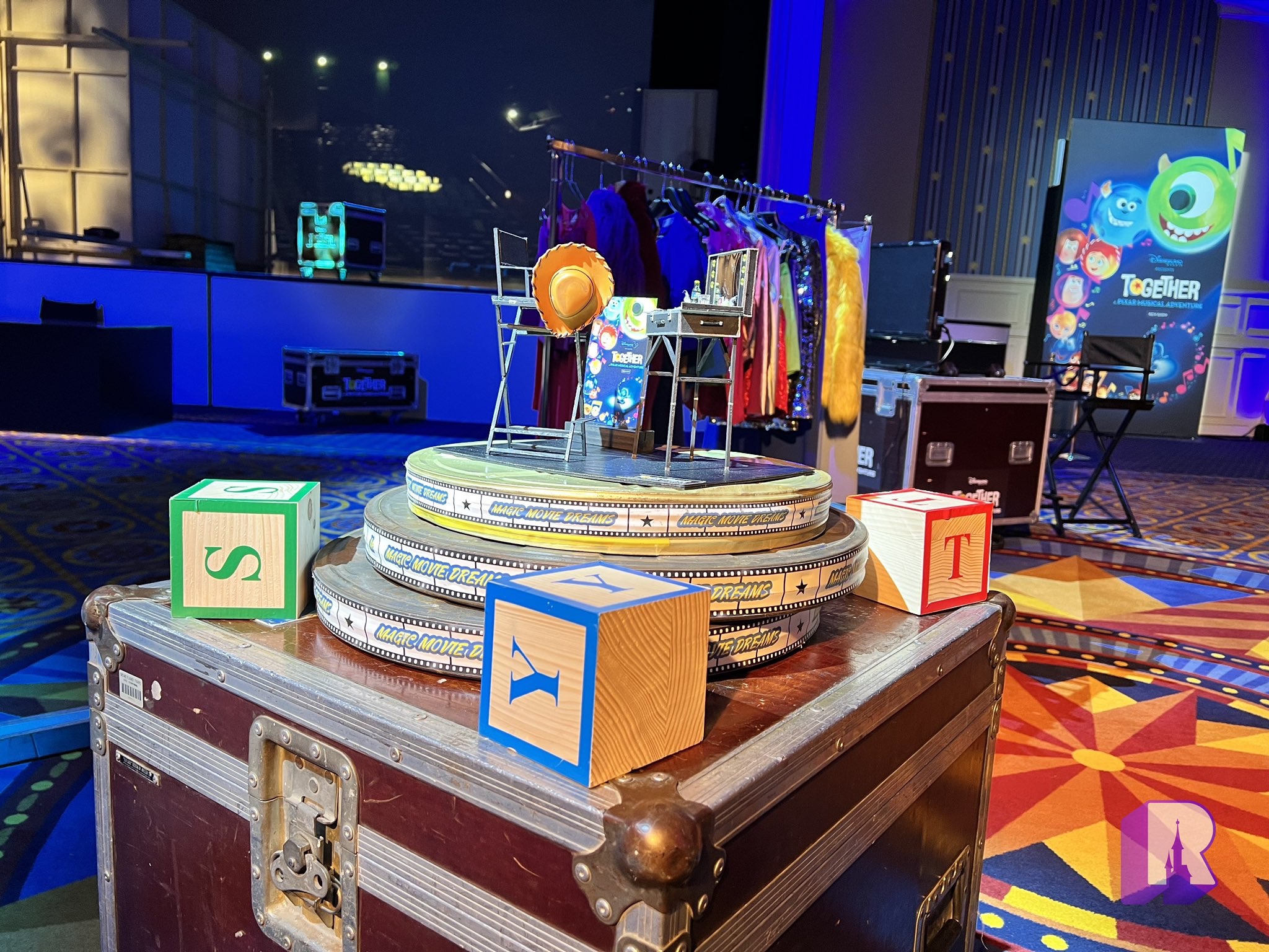 🪁Today we start at Disney Newport Bay Club in the “TOGETHER: a Pixar Musical Adventure” press preview welcome center. The room recreates backstage at Studio Theater, with the rear of the set looking out into the audience!