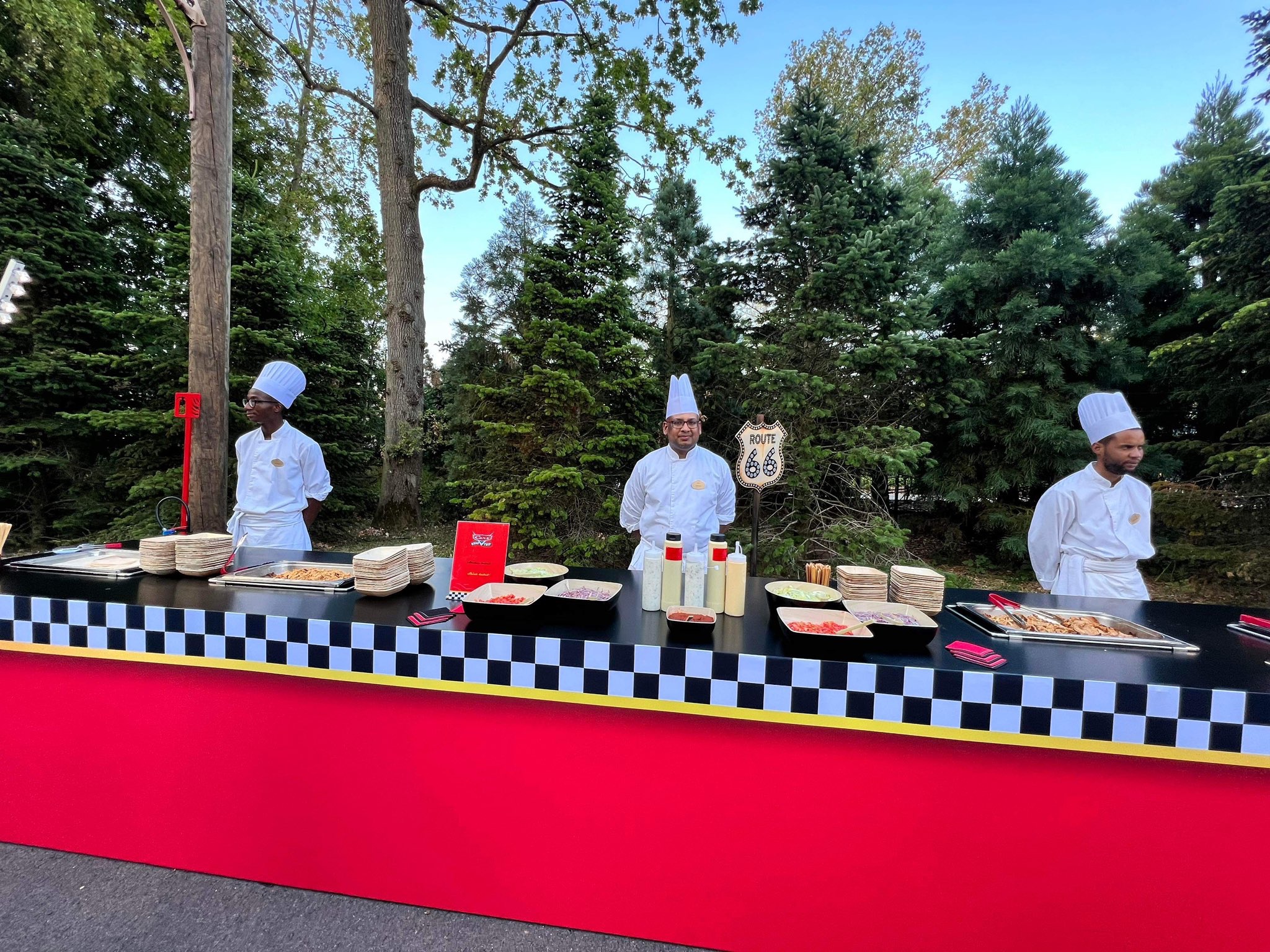 And of course dinner was served, but in a peculiar location: in the “Cars Road Trip” attraction. Interesting choice, but we sure won’t turn down a chance to est inside an attraction!