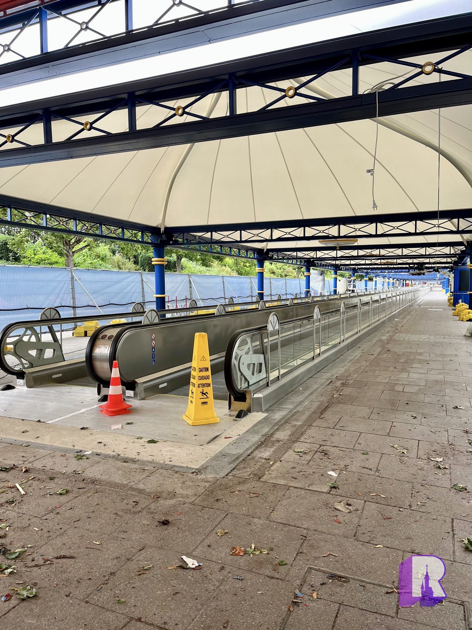 Work are advancing on the Guest Parking moving walkways and tents. Hopefully not too long now. Lighting was also updated on the path.