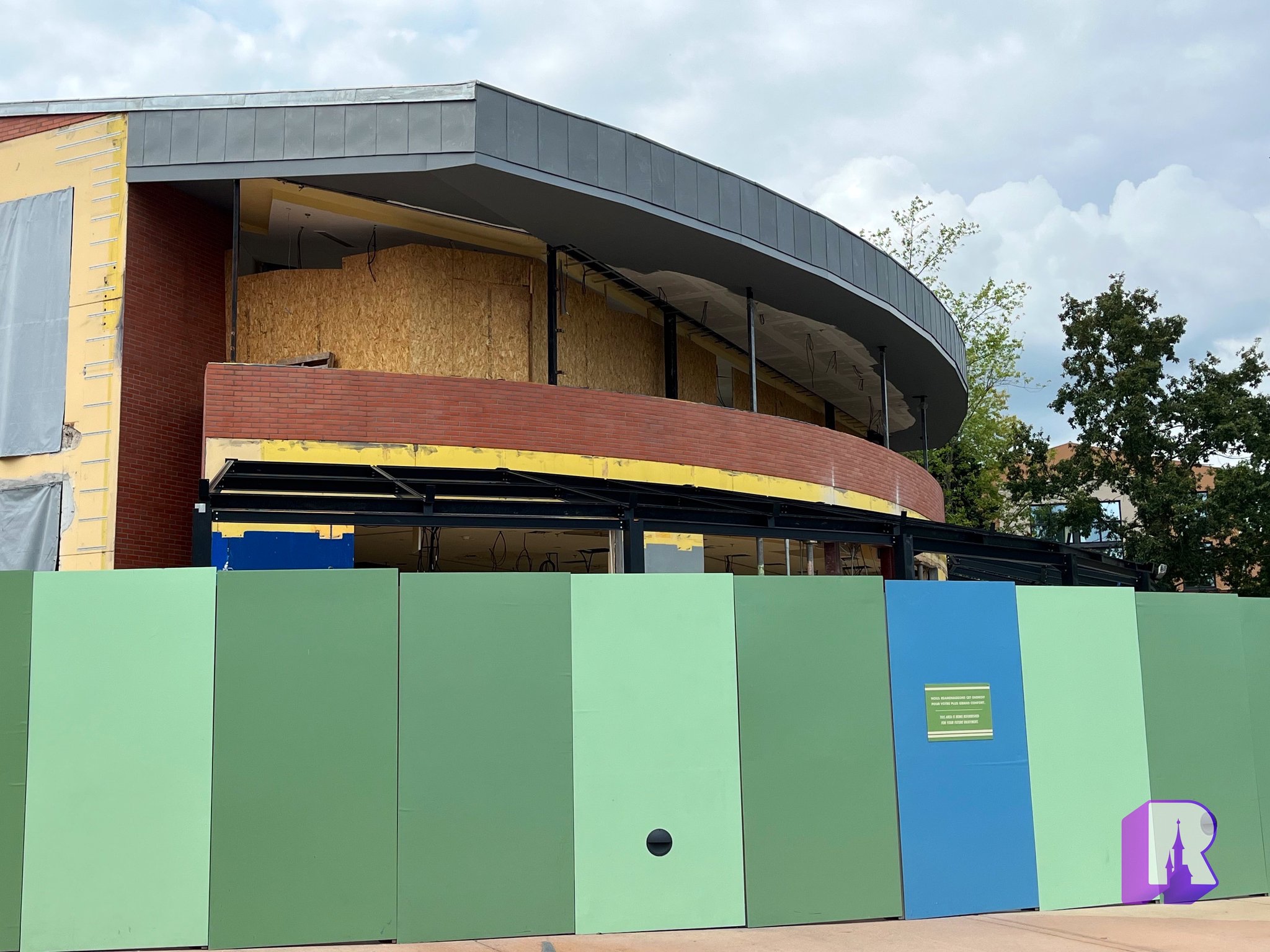 Heading into Disney Village, progress continues at Brasserie Rosalie, set to open this December.