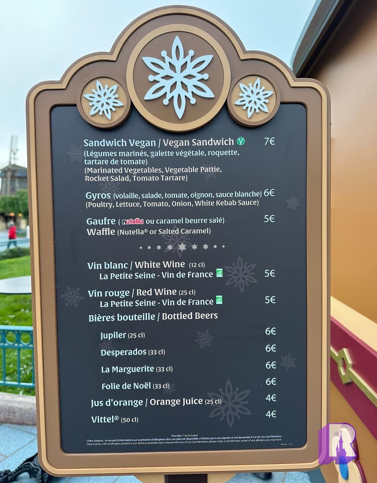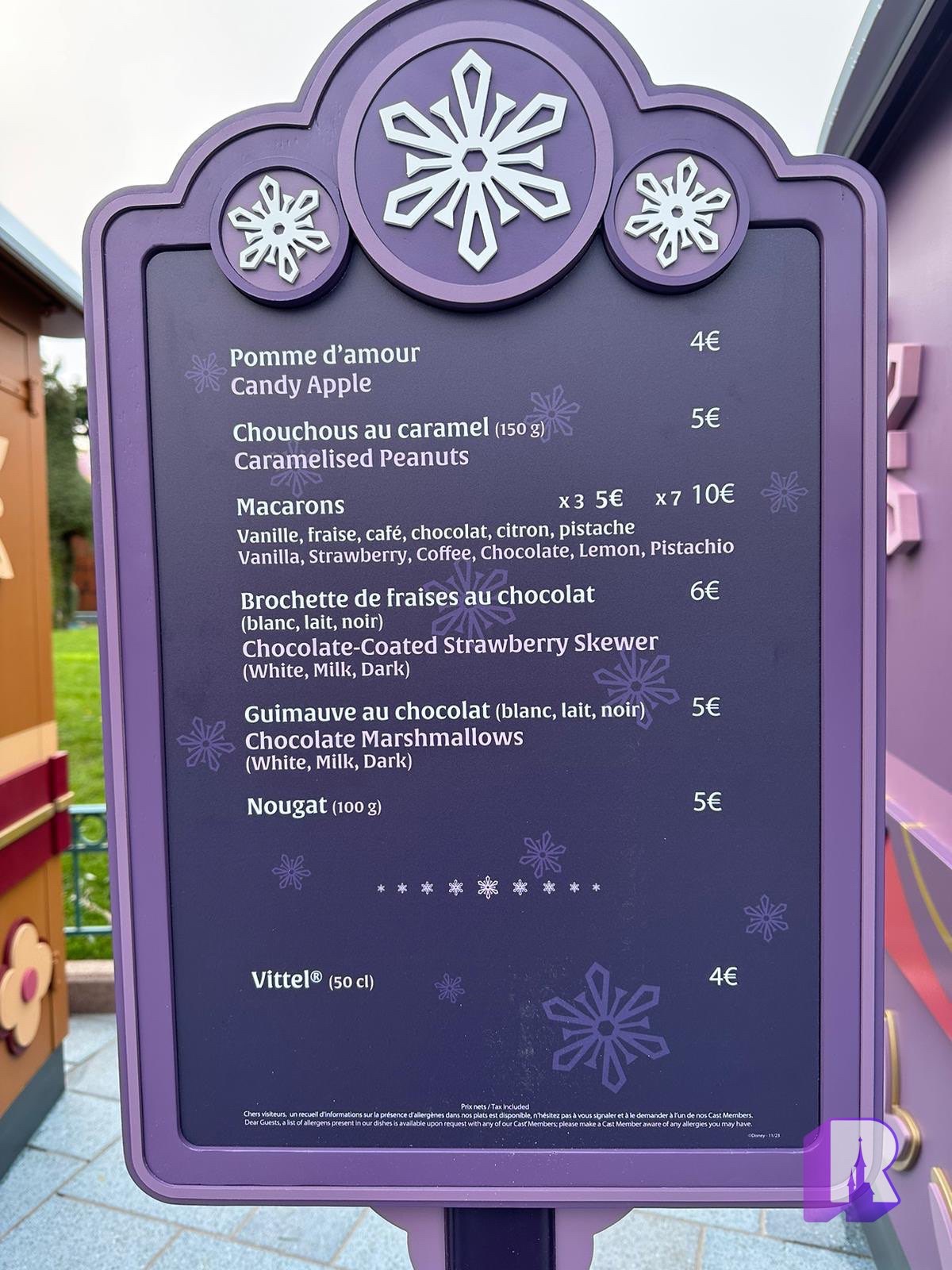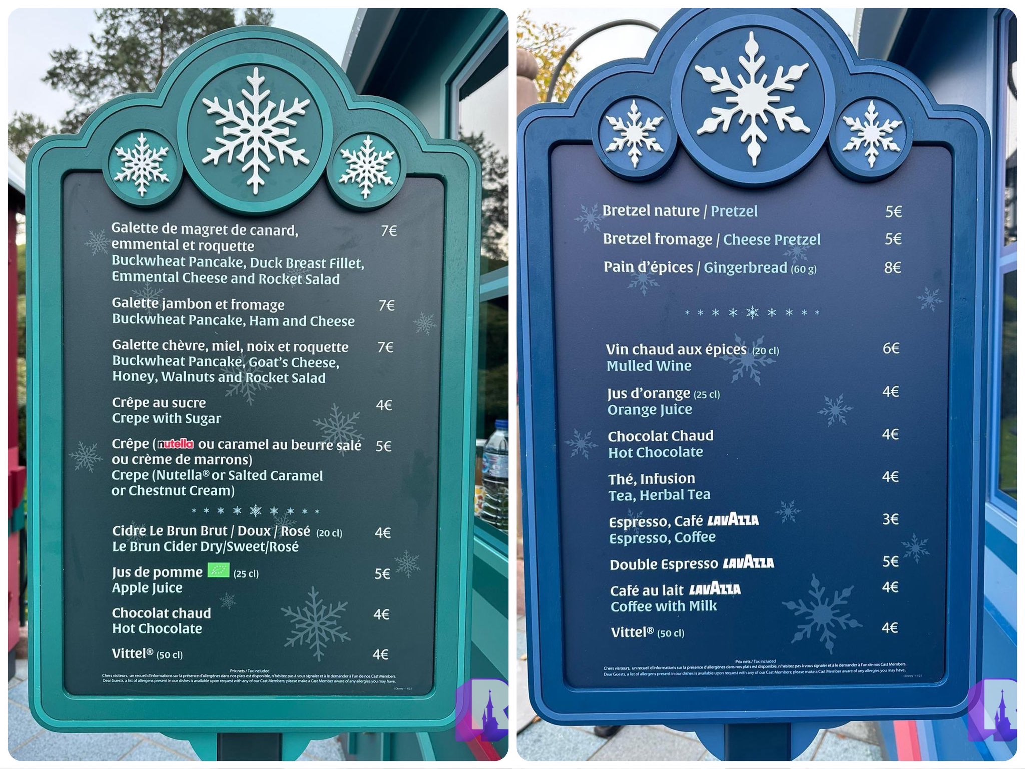 Christmas chalets have returned this year both on Place de Rémy and in Fantasyland (where two additional chalets have been setup this year). You’ll find the usual mix of holiday sweet and savory treats and drinks. Here are all the menus!