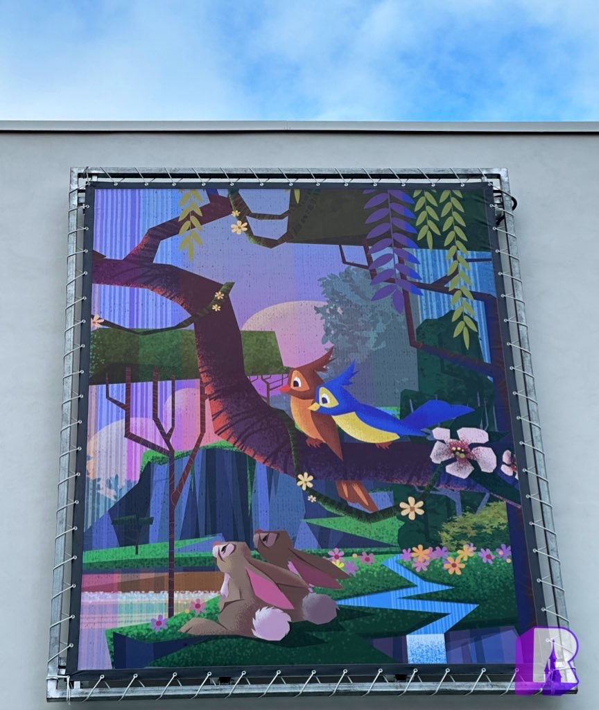 Over at Disney Village, new artwork has been installed in the frames above the former Disney Fashion Jr. Note that this is also not college and the final product will look more polished.
