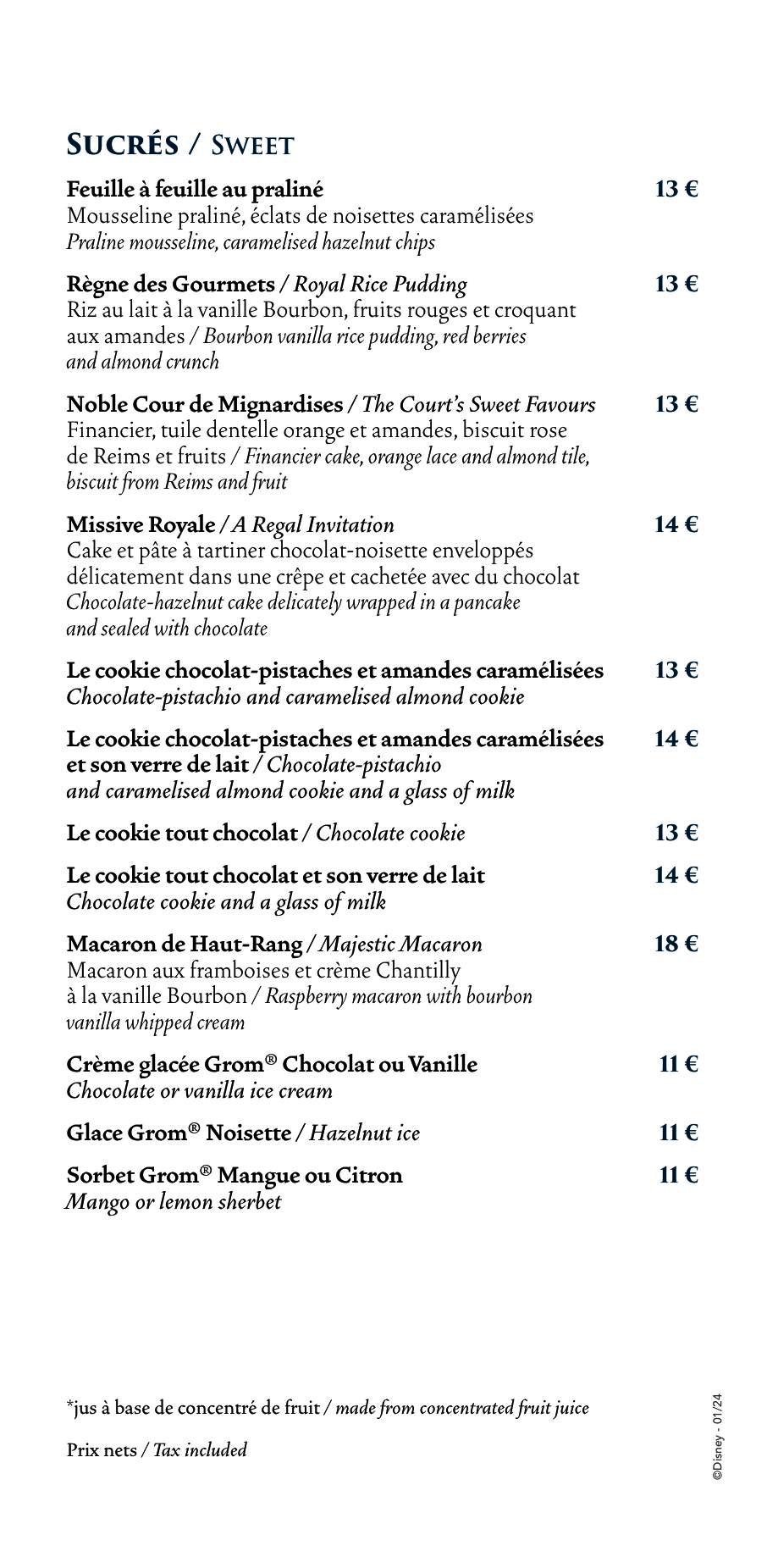 We also got a first look at the menus for “La Table de Lumière”, the Royal Banquet and the Fleur de Lys bar. Obviously everything is outrageously expensive but that was to expect in this upscale establishment: