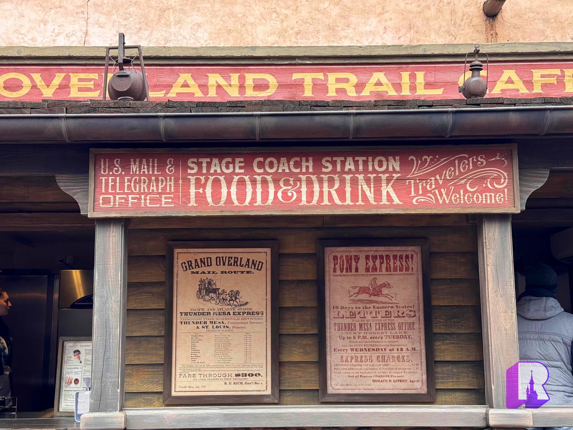In Frontierland’s backstory, the Overland Trail Café is a takeaway for travelers on their way west, whether by stagecoach or wagon! It also served as a mail relay for the famous Pony Express postal service of the time. Its name, Overland Trail, alludes to one of the main routes linking the East and West of the United States, used by the Pony Express, stagecoaches (Overland Mail) and gold seekers on their way to California.