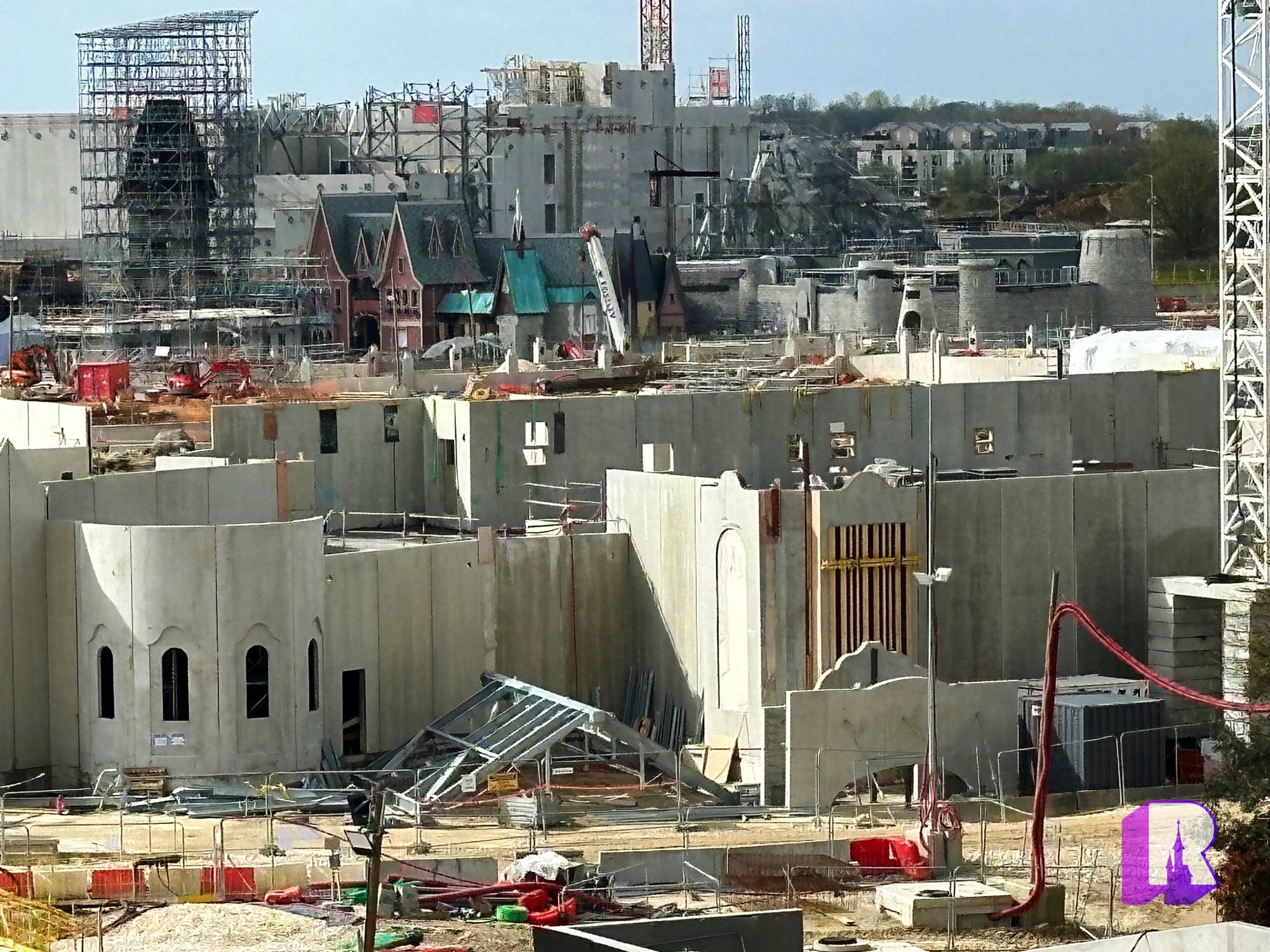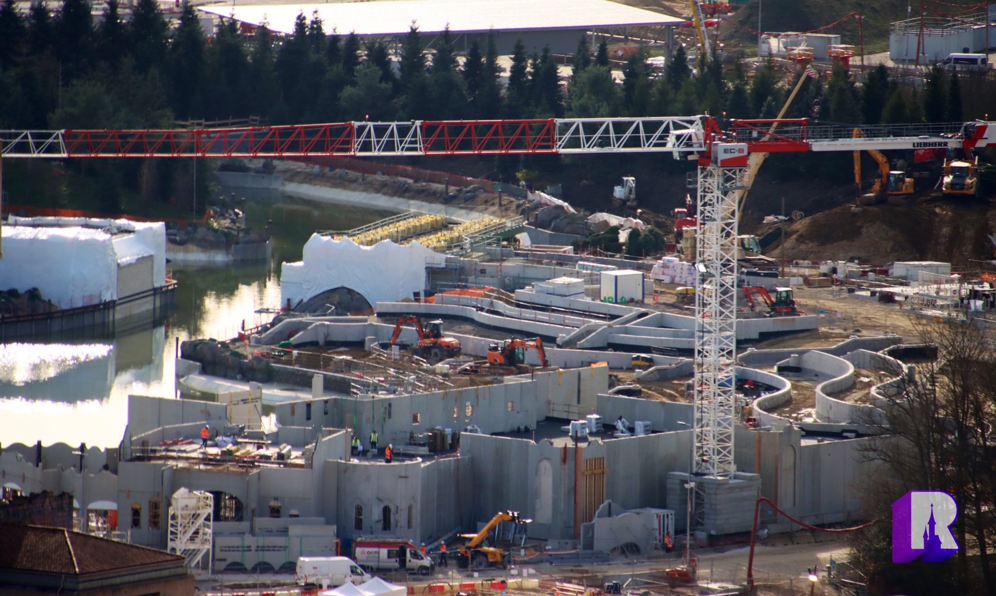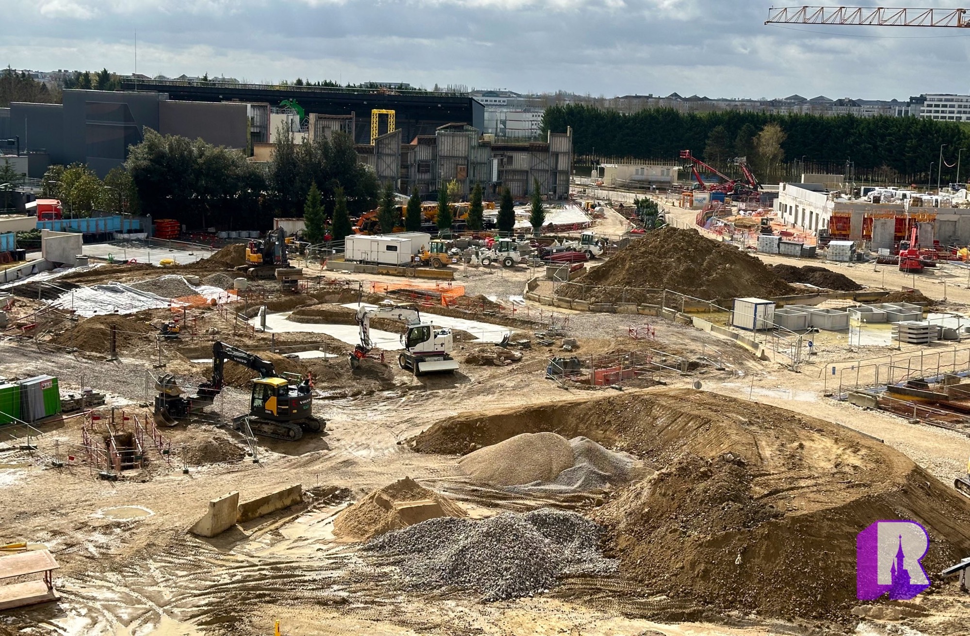We start with these photos of the Walt Disney Studios Park expansion site where progress is being made on all fronts: Frozen themed land, lake, Rapunzel attraction, lakeside restaurant, landscaped avenue, viewing areas, general theming and place making. Still a lot of work to do.