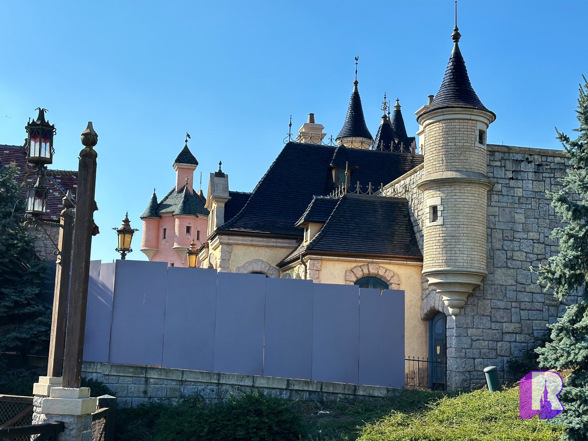 And at Sleeping Beauty Castle scaffolding has finally started going down on these expertly refurbishment Castle Courtyard buildings. No more big tarp boxes.