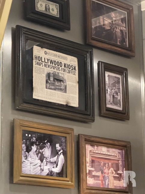 Over in World Premiere, the Searchlight Refreshments kiosk has received some frames which tell details of the backstory of this “newsstand turned snack location”.