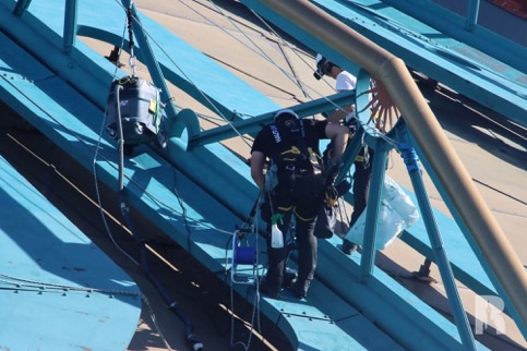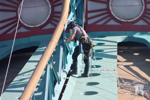 Painting and refurbishment of the Space Mountain show building continues – what a cool job that must be!