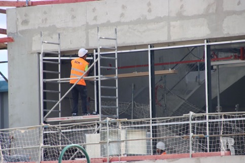 At Disney Village, window frames and HVAC is behind installed at the new McDonald’s which, as usual, is making great progress.