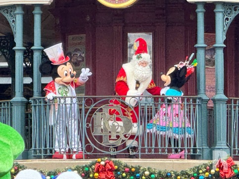 Launching this week was the “Holiday Gathering”, a non-parade Christmas parade cavalcade which – I am guessing – uses the remaining time available on the Cast’s clock for the day. It’s nice to see the well-amortized cars and as always, Santa and the Disney Friends.