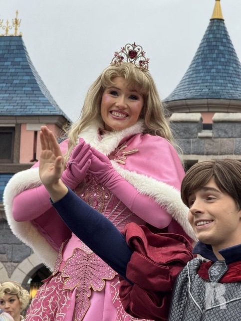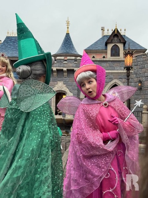 Over in Castle Courtyard, Aurora and Philip have their own greeting, joined by the fairies.