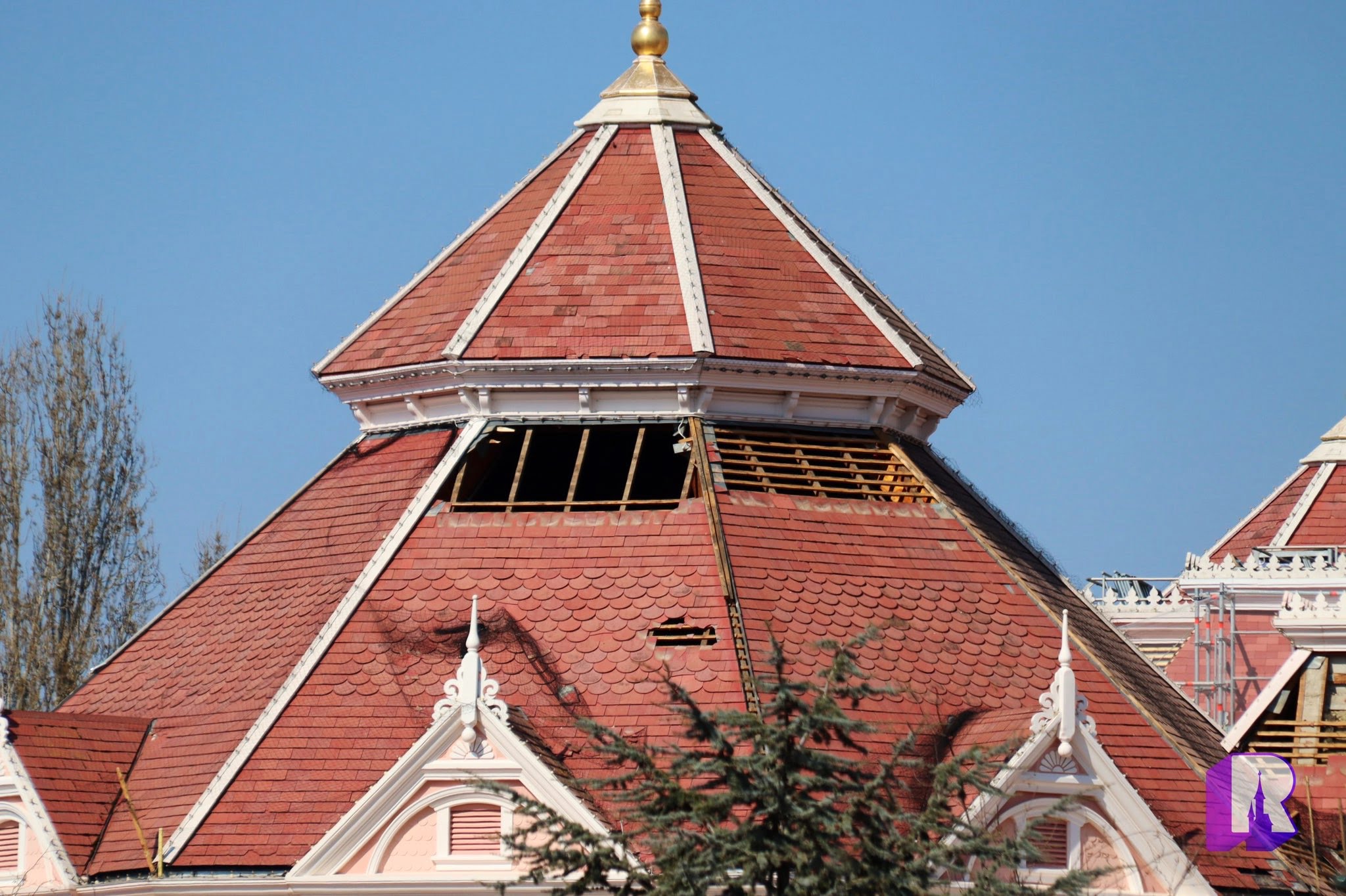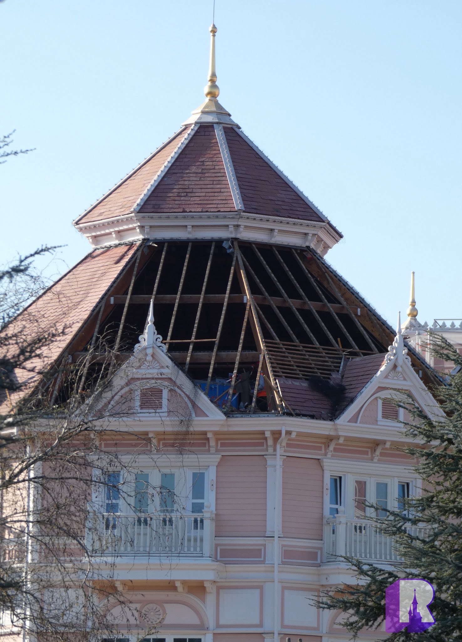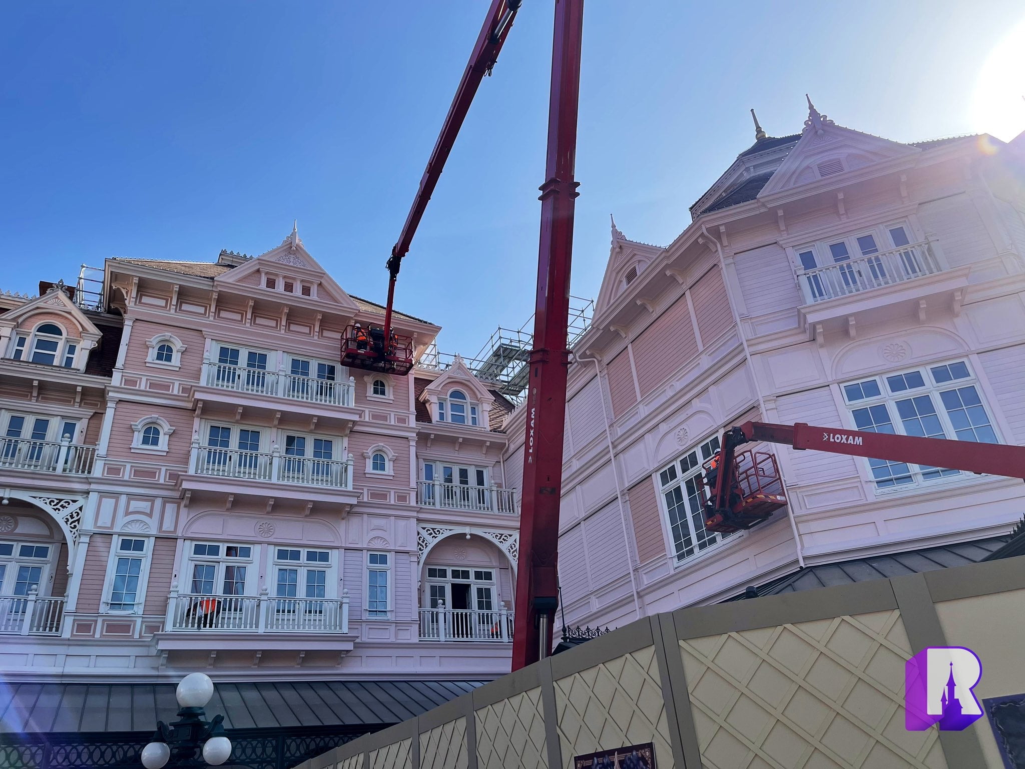 At the Disneyland Hotel, work continues on the roofs, balconies and facades, on top of course of the inside refurbishment. Some of it is pretty impressive to see !