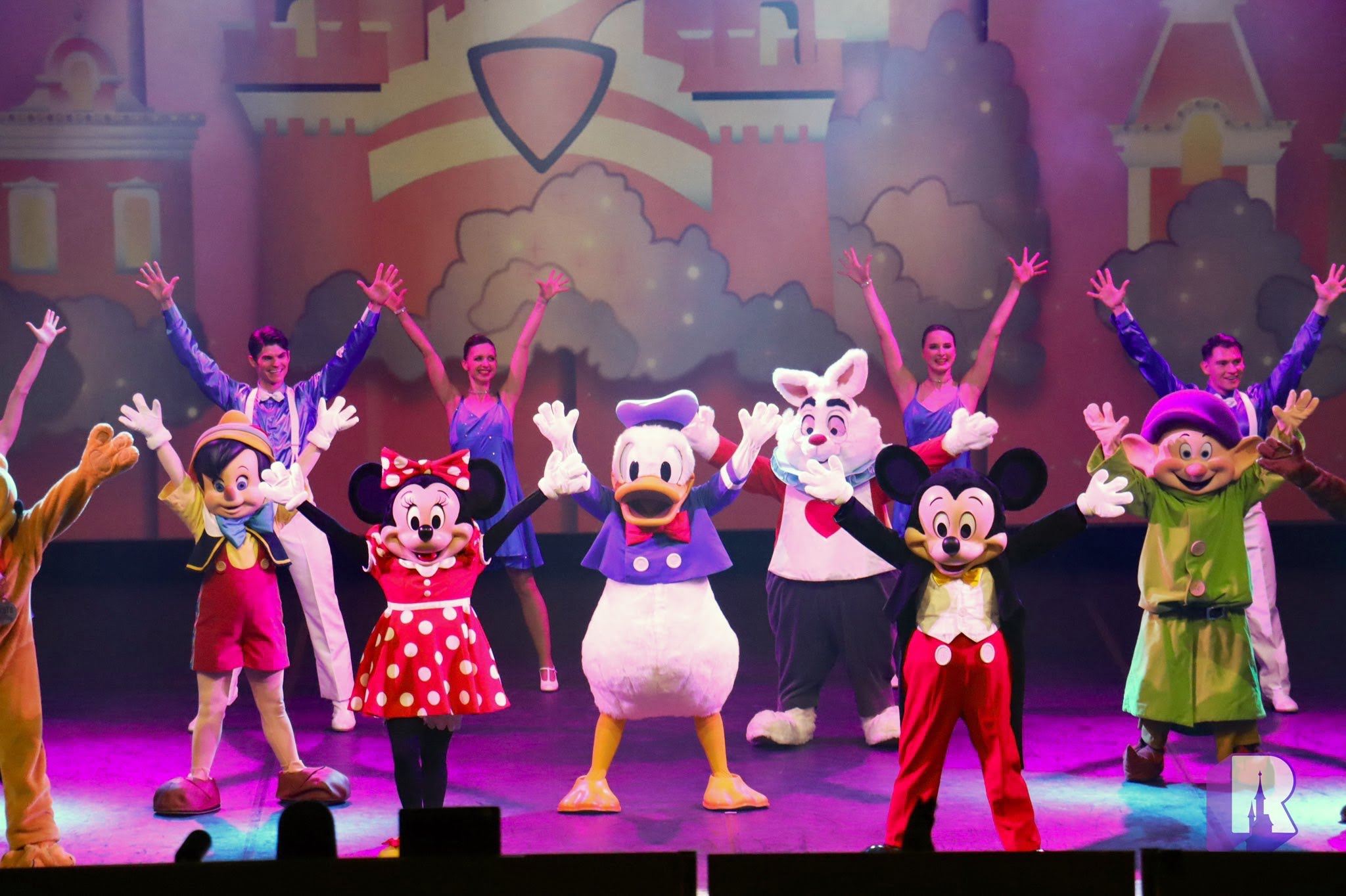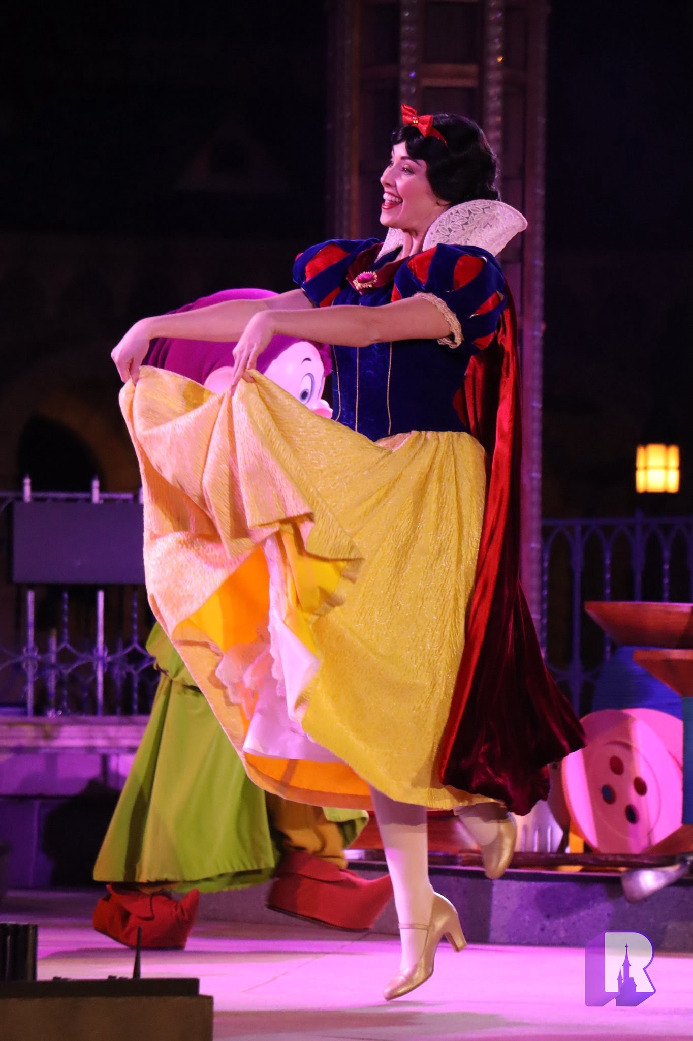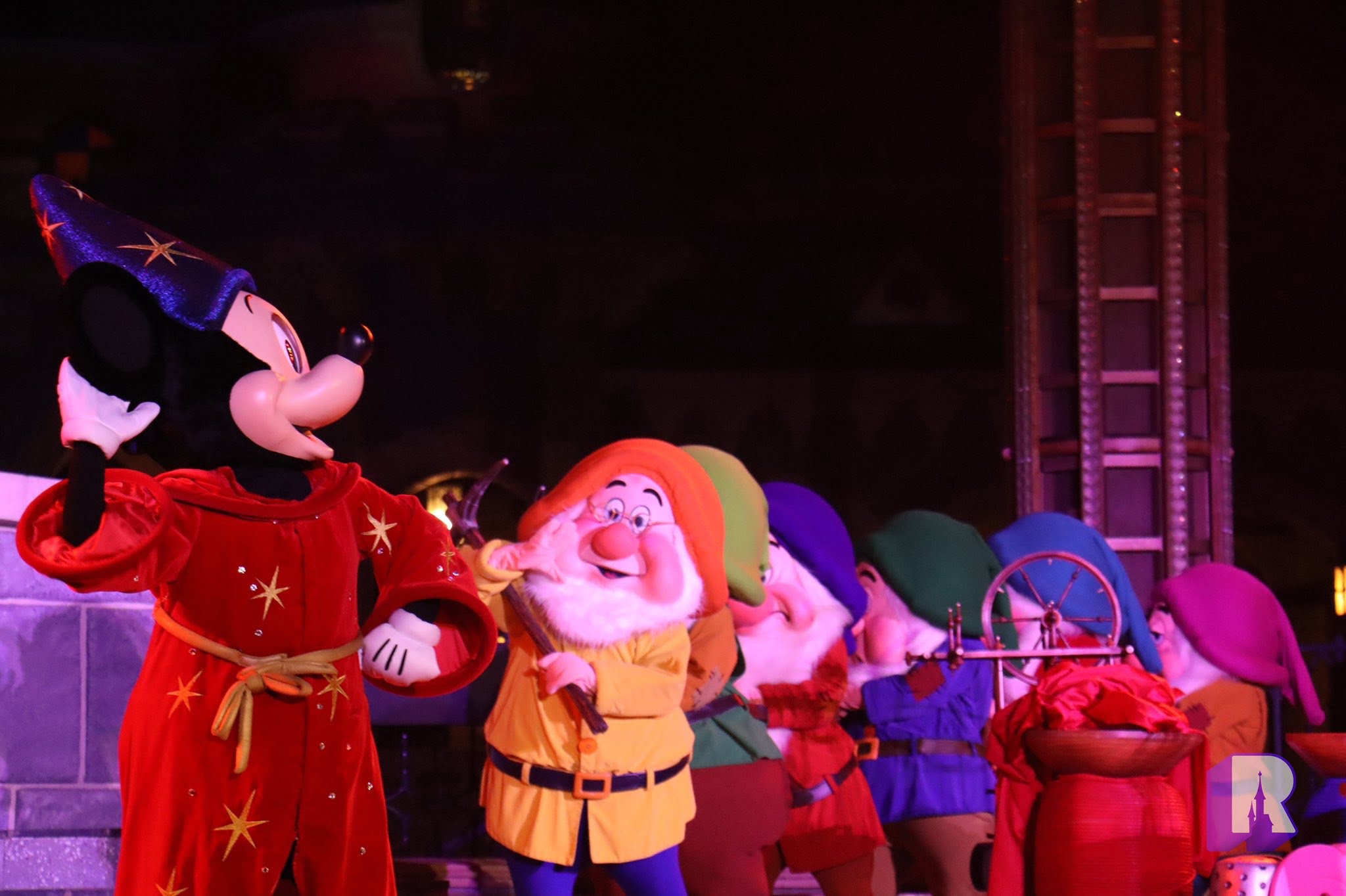 A revival of this classic 90’s show, it was performed, as did the original, on Castle Stage but of course without the massive book backdrop. Still it was lovely to see all this nostalgia, and characters that we seldom see anymore such as Sorcerer Mickey, The Seven Dwarfs, and the scary looking Witch !