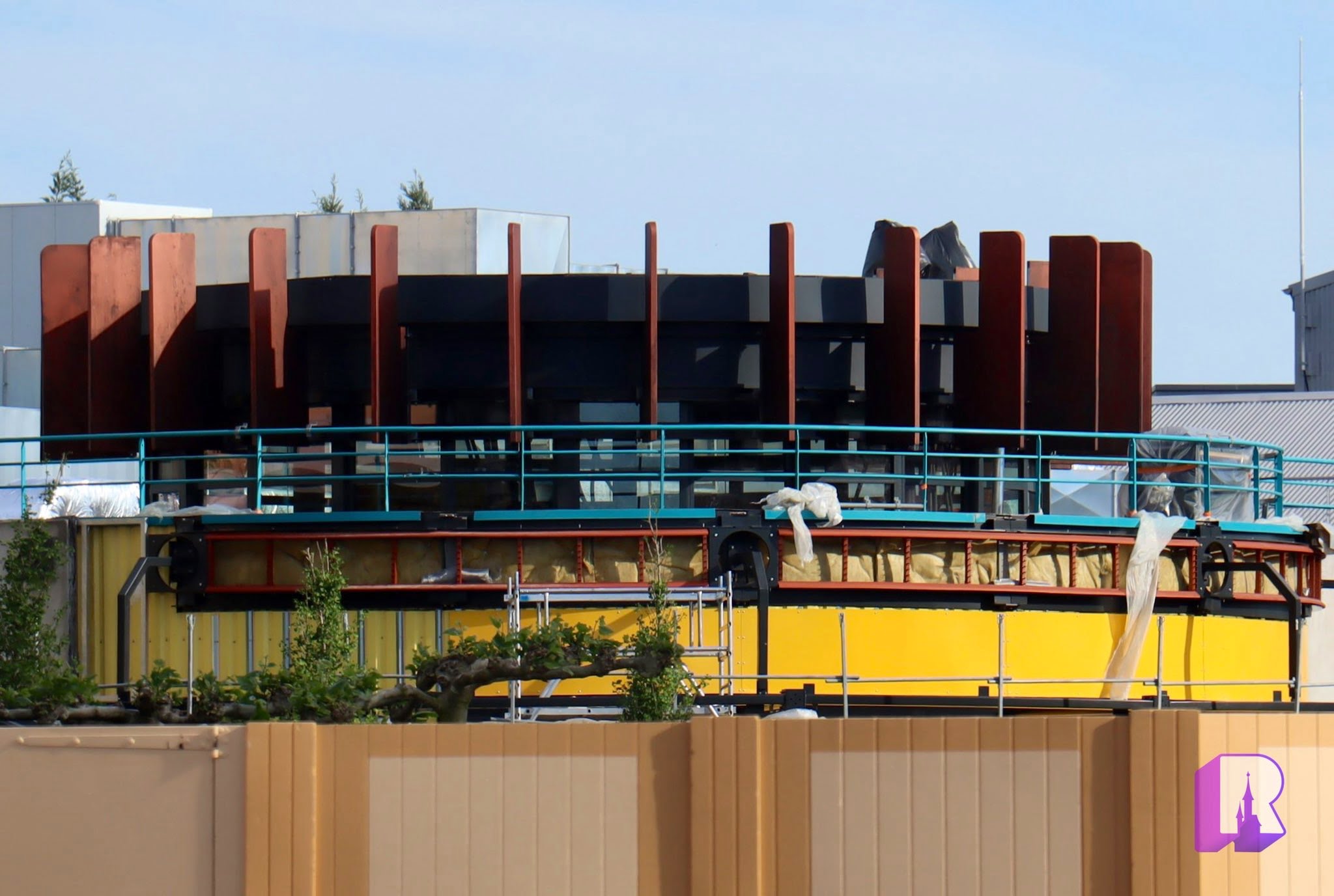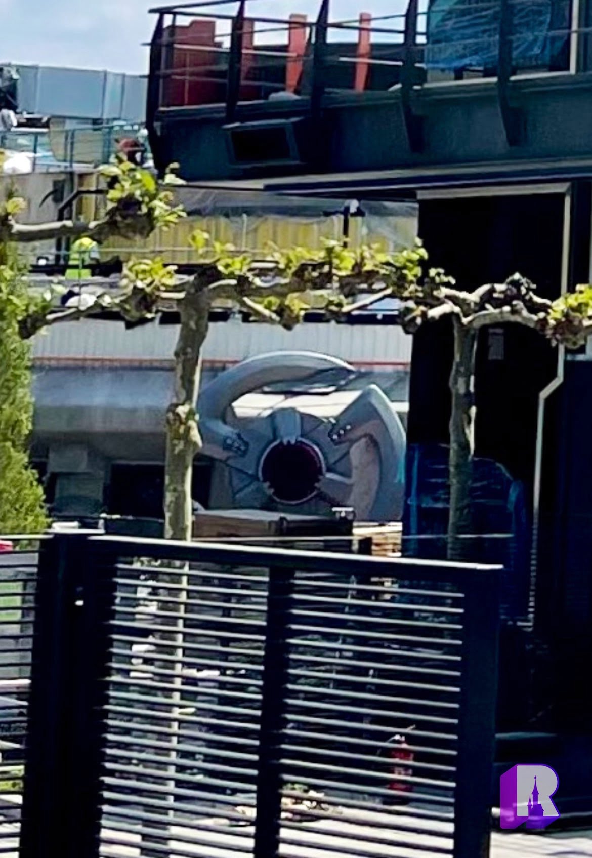 On the ground, we noticed this week a new giant PYM Particle Disc installed as a prop as well as additional elements in the Spider-Man queue such as blue and red railing and large poster boards on the walls.