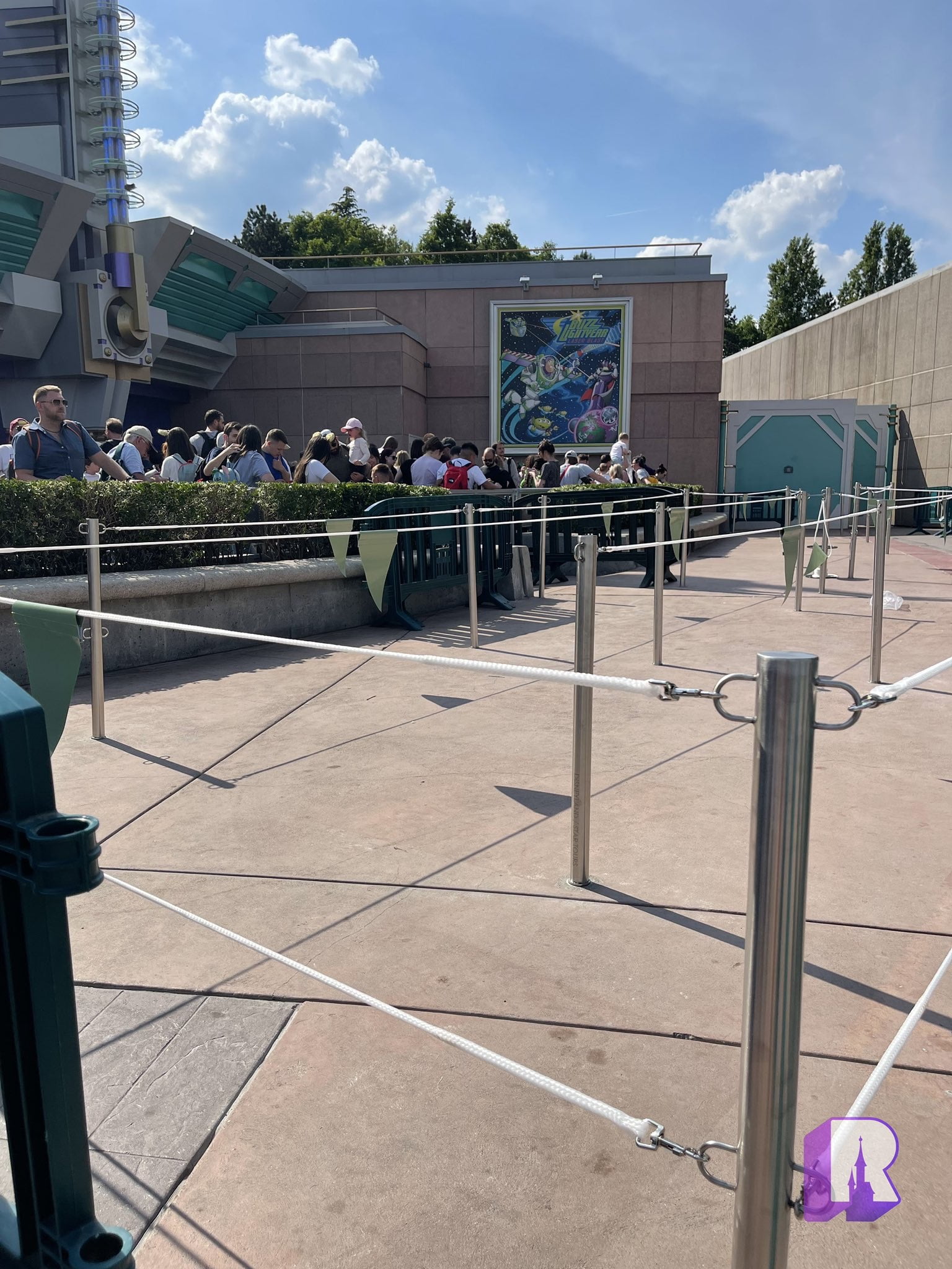 In Discoveryland, the new Buzz Lightyear Laser Blast expanded queue has been completed and markers have appeared across the plaza at Hyperspace Mountain for the same purpose.
