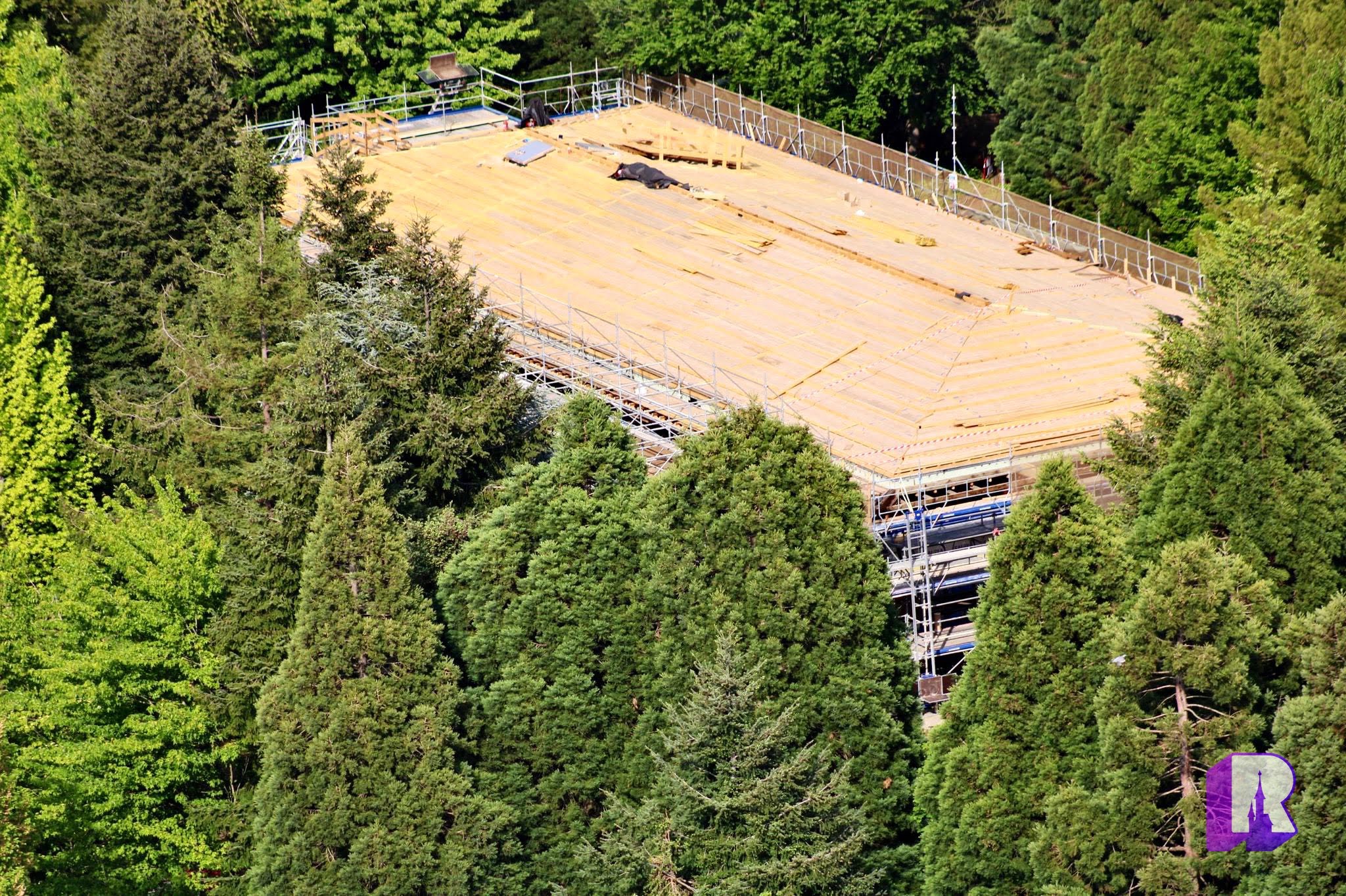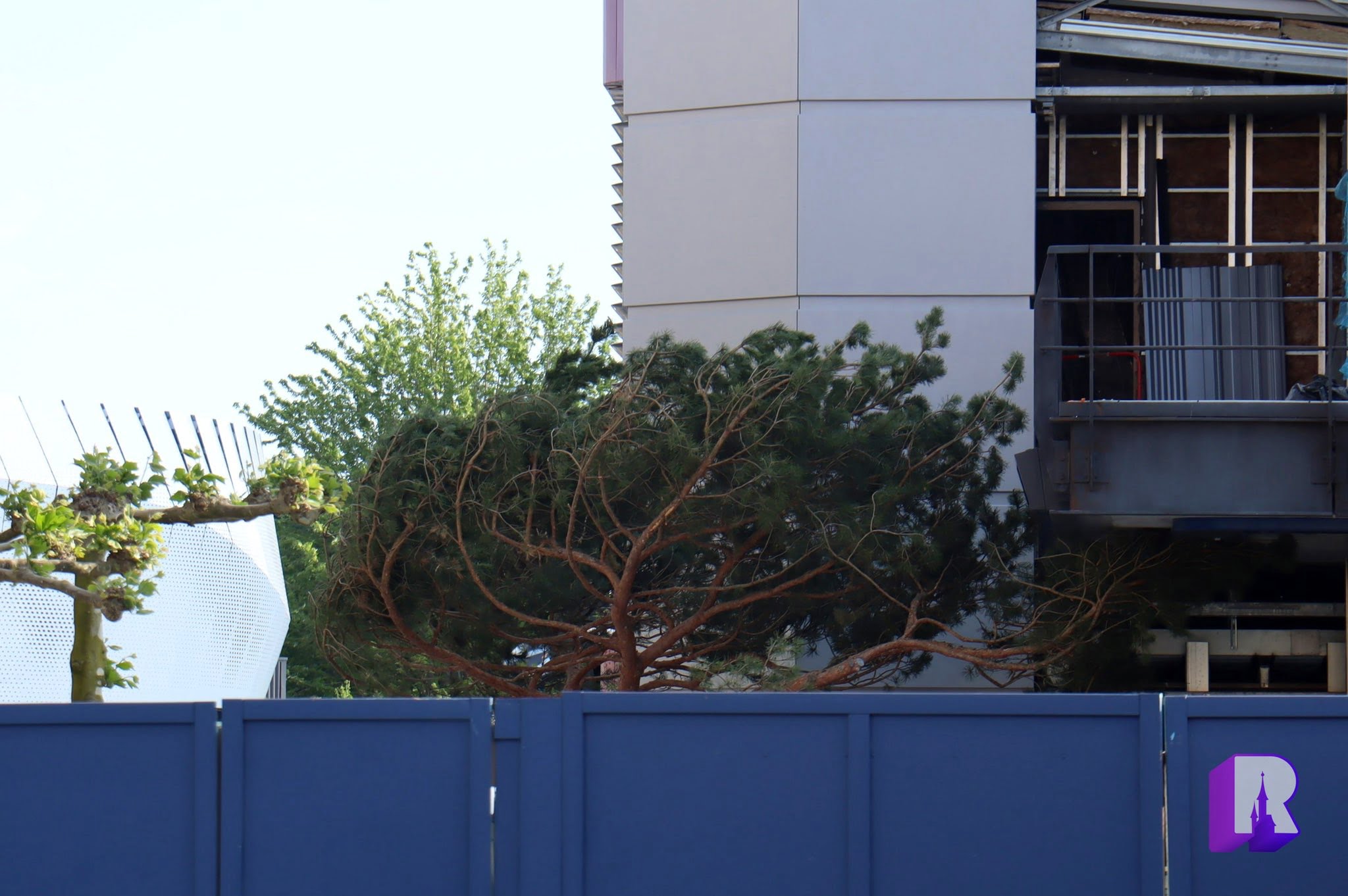 At the Disneyland Hotel, refurbishment continues on the roofs, facade, and transforming some of the balconies into walkways.