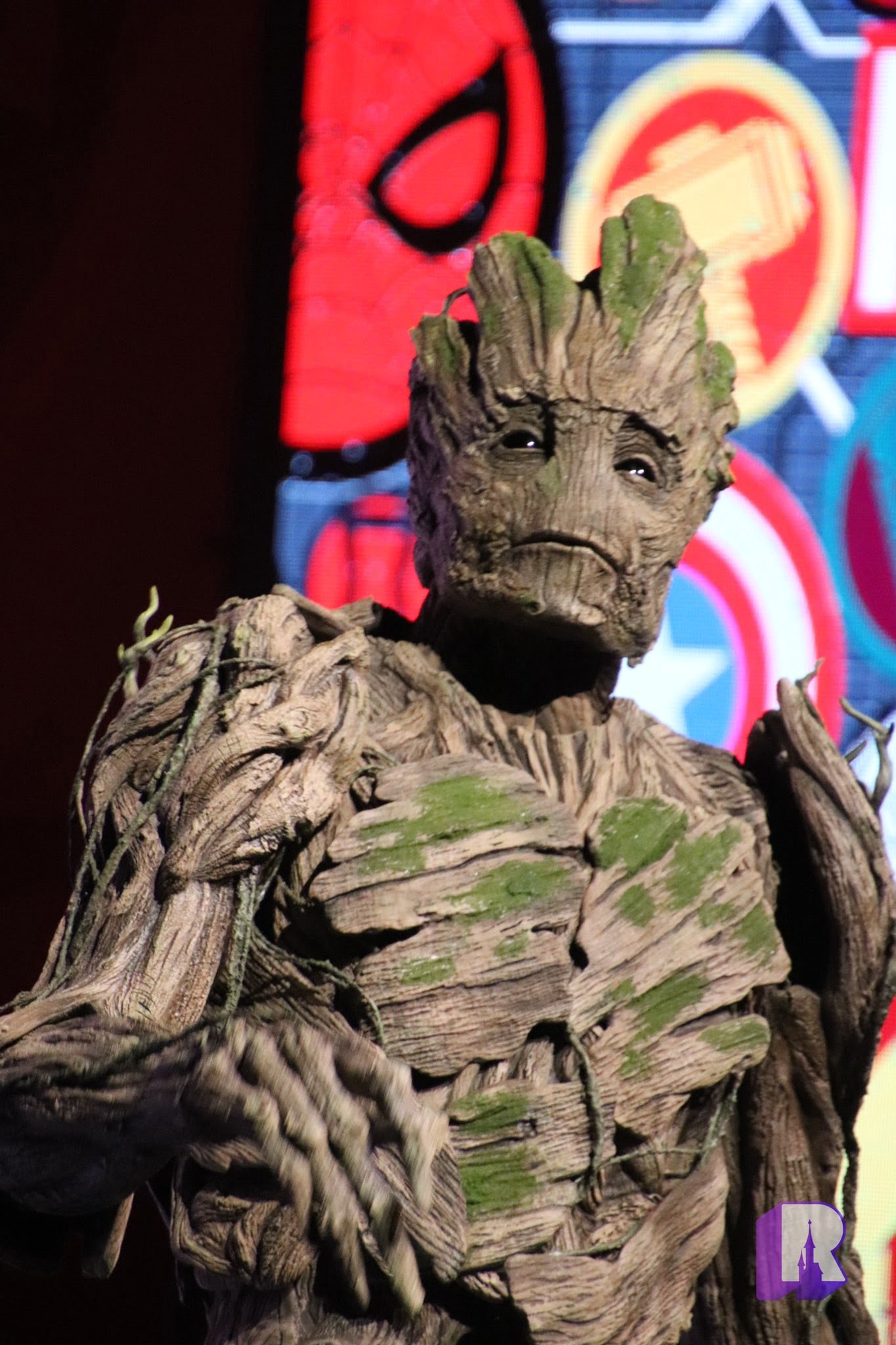 This week, Studio Theater welcomed Groot as part of the Marvel meet and greet. Groot only comes out for a few minutes between sets by other heroes. This is likely a test for Avengers Campus and Groot will only be there on select days, but it’s great to see him nonetheless!