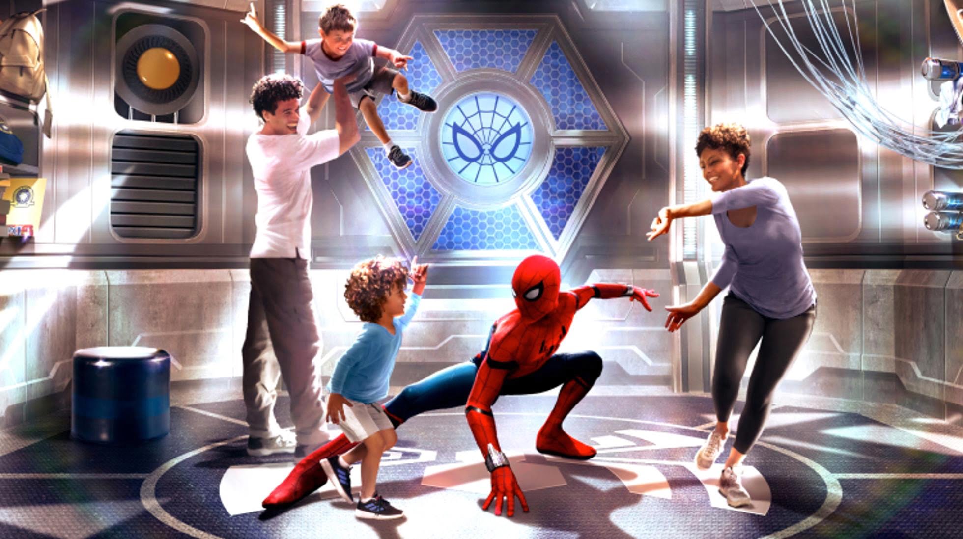 Later in the week through what seems to have been a technical mistake, concepts were made public for the “Hero Training Station” meet and greet, together with text describing the experience : “Feel the power building within you as Spider-Man, Captain America and Black Widow teach you the moves that make them Earth’s mightiest heroes”