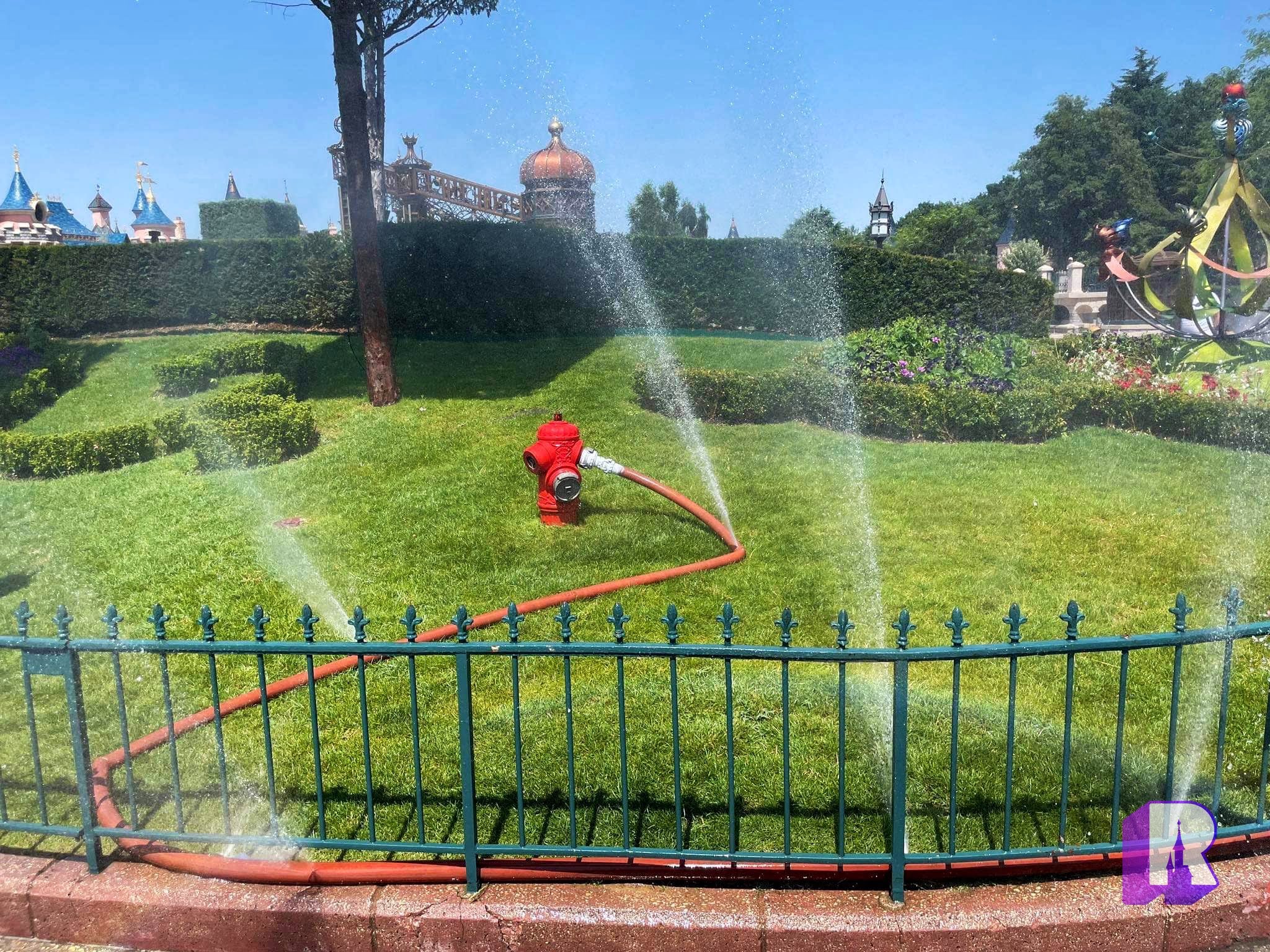 On Central Plaza ans Production Courtyard, the fire department had set up perforated hoses to keep guests cool. Something you don’t see everyday !
