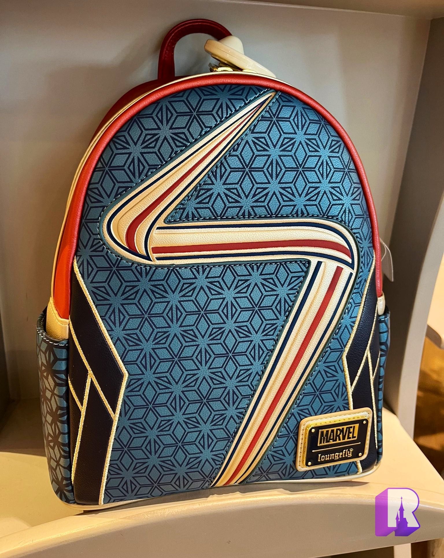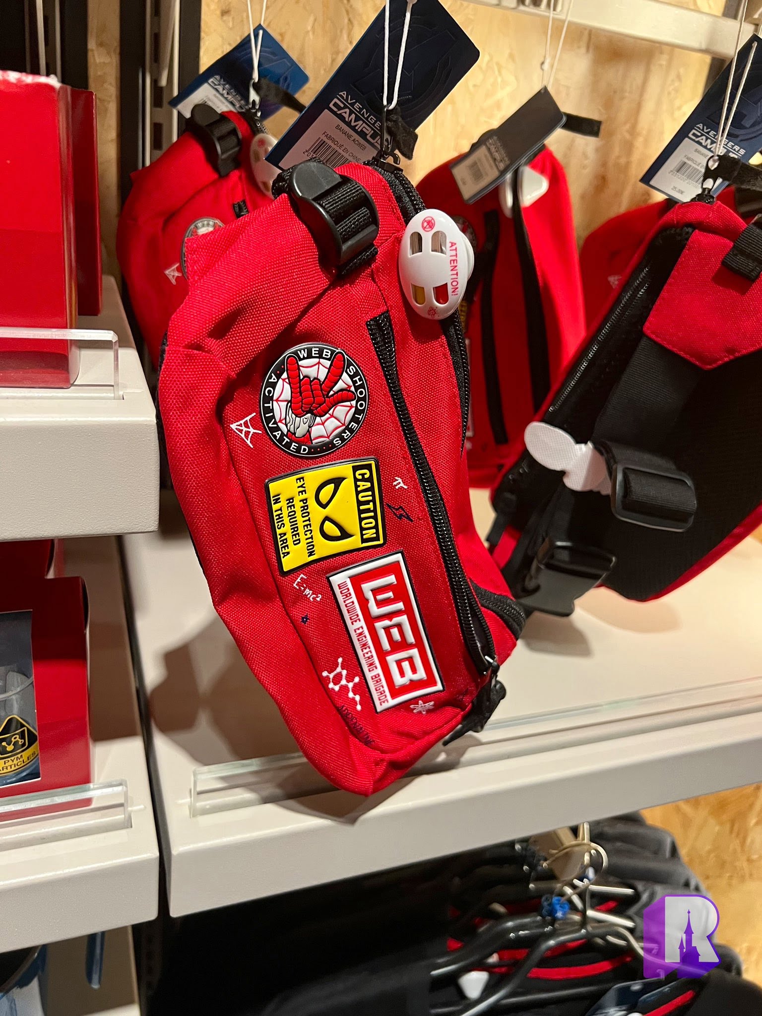 Some of the new Avengers Campus arrivals this week: a backpack, bum bag, Ms. Marvel Loungefly bag and a concept art print on metal plate.