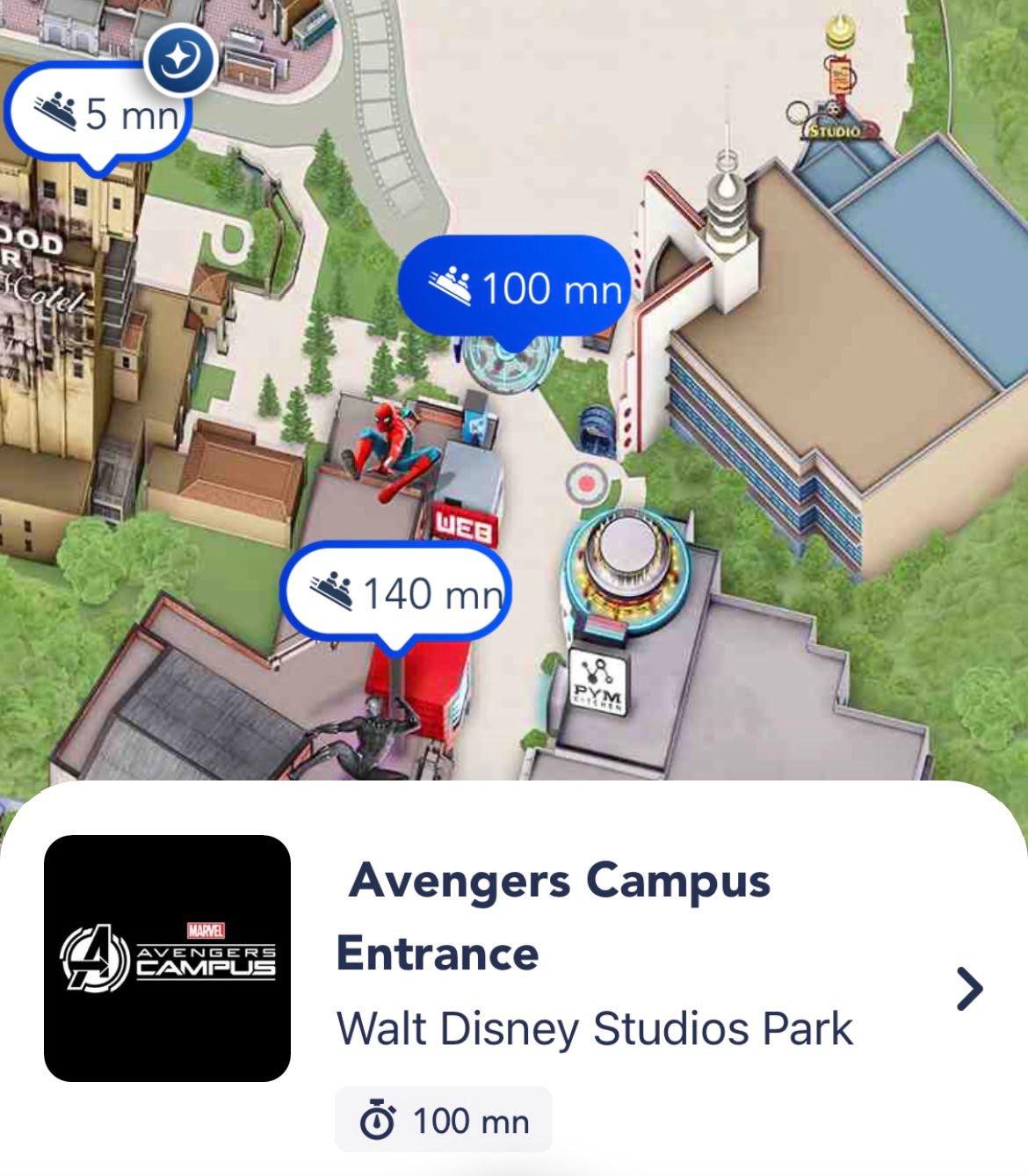 Avengers Campus operates a queue in Production Courtyard once the land reaches capacity, in order to preserve the experience inside. The choice was made to not use “boarding groups” and in the end it was a decent choice since apart from opening day, the land does become a walk on most of the afternoons and the evenings. The app was even updated to reflect the wait time at the entrance.