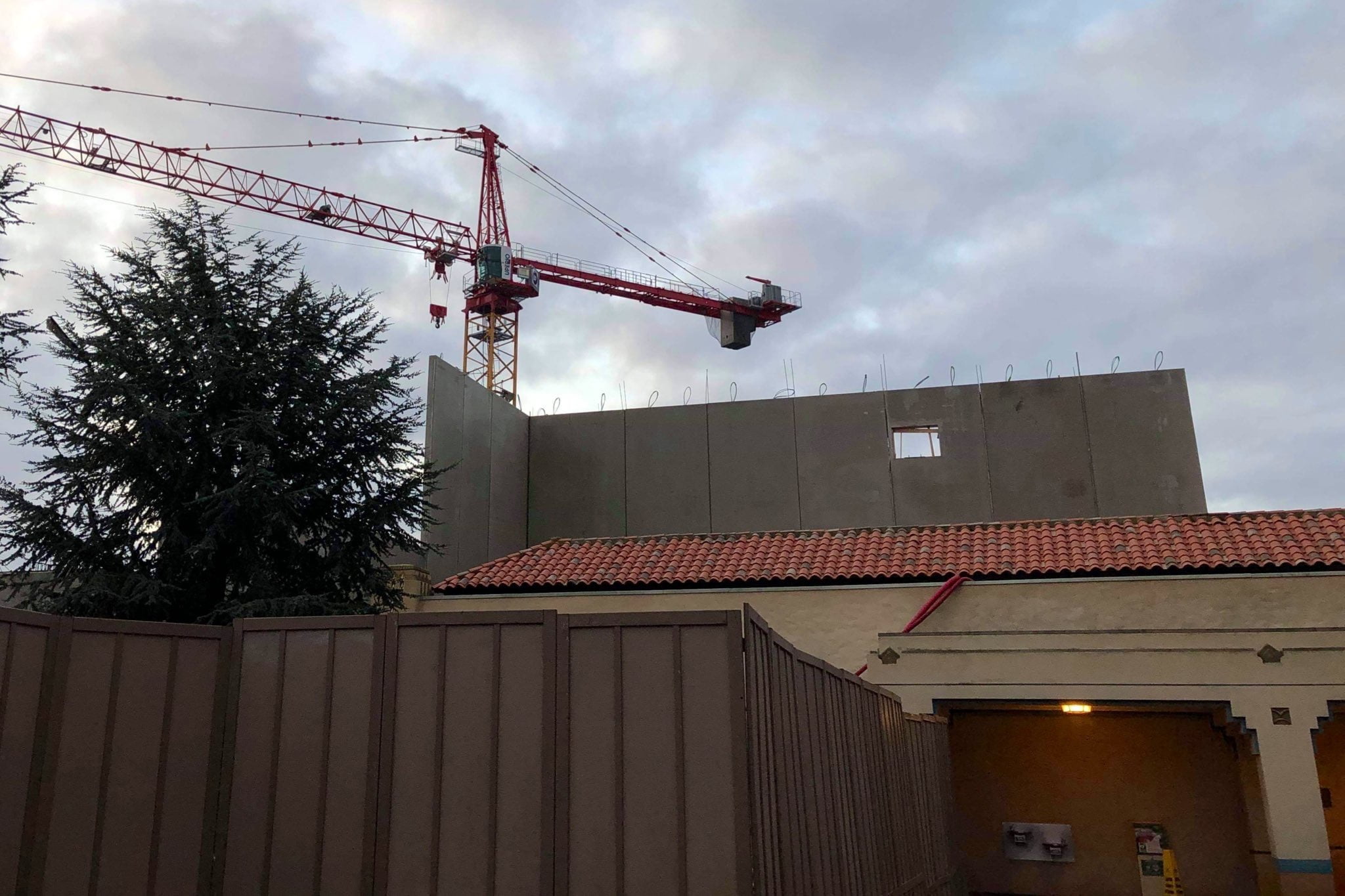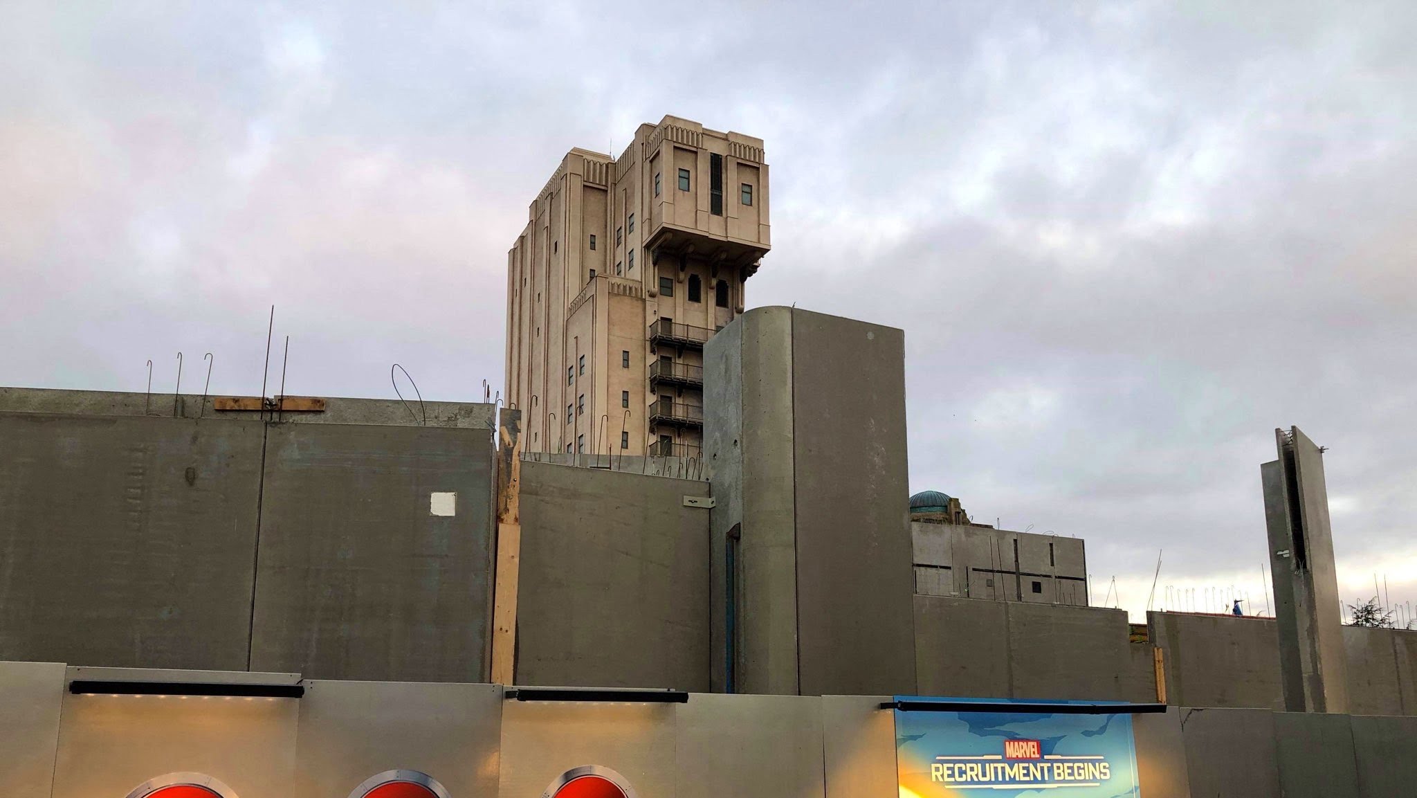 Good progress is still being made on the Spider-Man attraction show building. It will be interesting to see just how close it will come to Tower of Terror (looking at that wall) and what the transition will be: