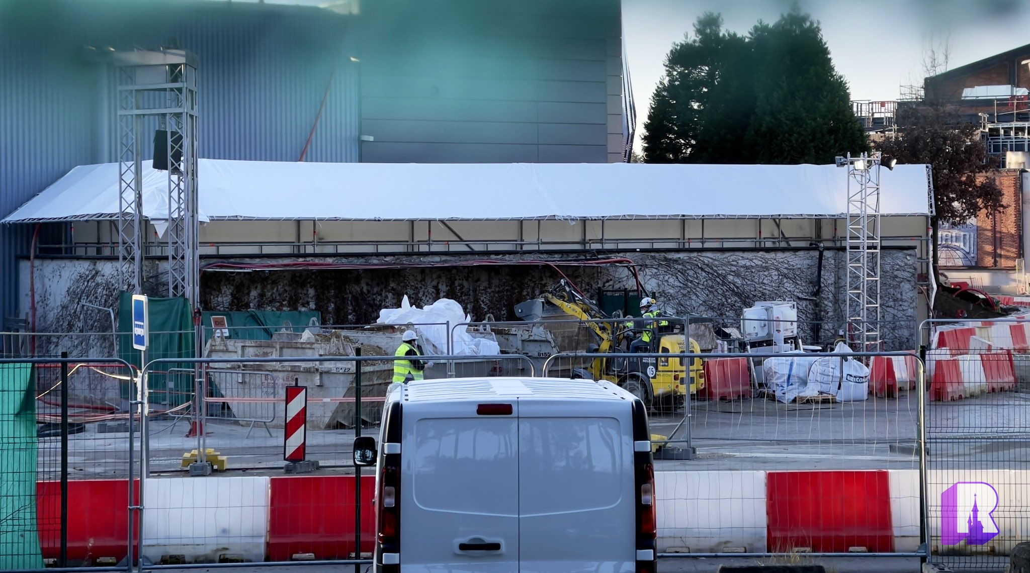 The Spider-Man show building is still taking shape but appears to be lagging behind compared to progress made next door at the coaster.