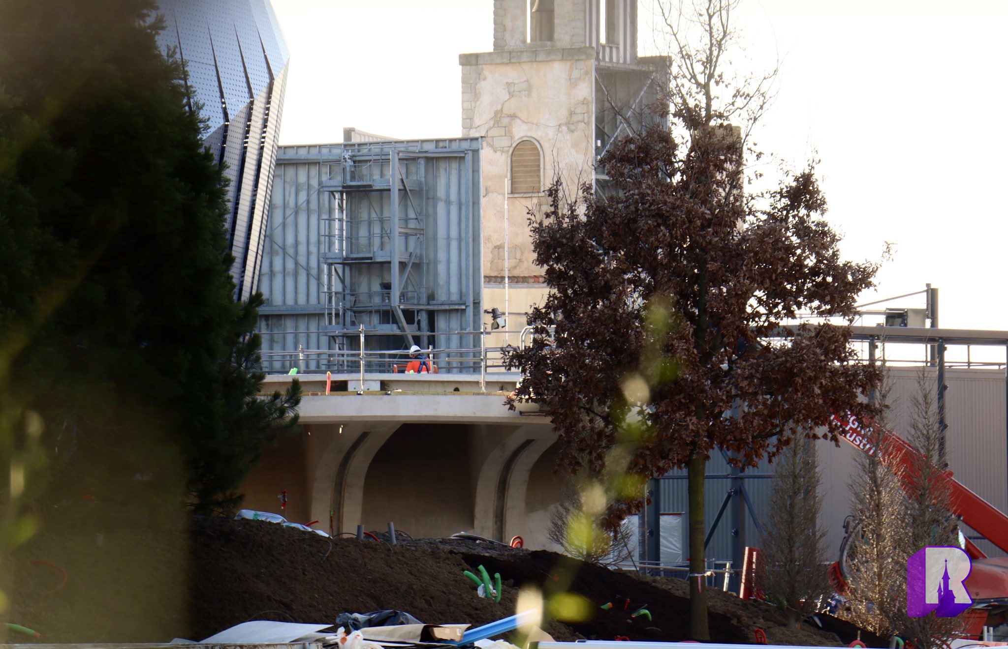 And a recent development was the addition of the railing around the Quinjet platform. The ship will be placed up there and this will be a “pre-entrance” of sorts for the coaster where Guests will take a flight with Iron Man and Captain Marvel at high g-force.